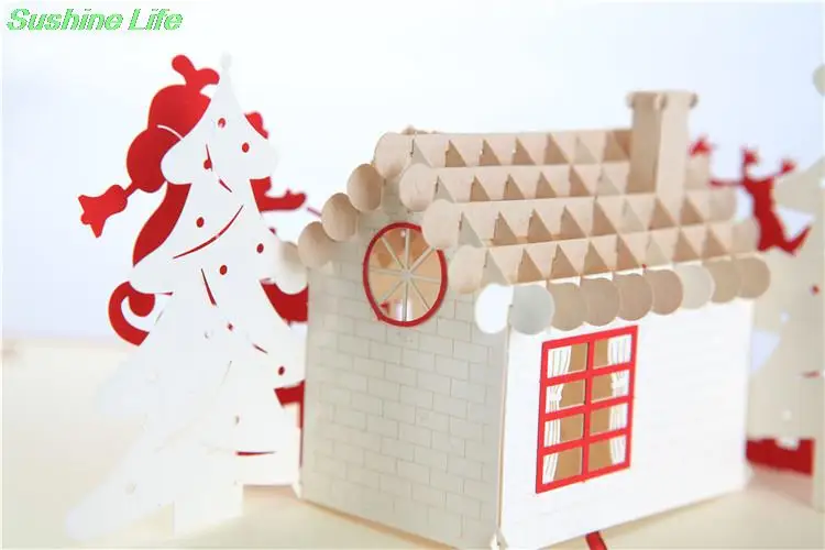 3 шт./лот, рождественский дом, 3D стоячая крафт-бумага с Киригами, лазерная резка, ручная работа, почтовые открытки, Подарочные поздравительные открытки
