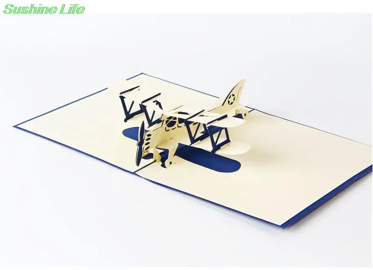 3 шт./лот мультфильм самолет 3D стоят вверх крафт-бумаги Киригами, Оригами лазерная резка ручной работы почтовые открытки подарок поздравительные открытки домашний декор