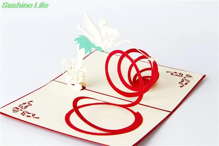 3 шт./лот Ангел сердце 3D стоят вверх крафт-бумаги Киригами, Оригами лазерная резка ручной работы почтовые открытки подарок поздравительные открытки домашний декор
