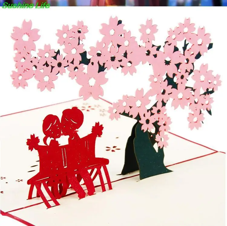 3 шт./лот, влюбленные вишни, 3D стоячая бумага с Киригами из крафт-бумаги, лазерная резка, ручная работа, почтовые открытки, Подарочные поздравительные открытки