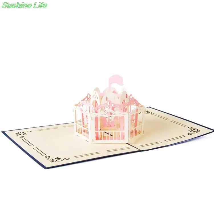 3 шт./лот карусель 3D стоьте вверх крафт-бумаги Киригами, Оригами лазерная резка ручной работы почтовые открытки подарок поздравительные открытки домашний декор