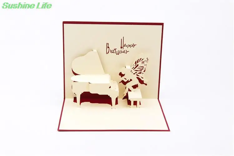 3 шт./лот с днем рождения фортепиано 3D стоят вверх крафт-бумаги Киригами, Оригами лазерной резки ручной работы почтовые открытки подарок поздравительные открытки