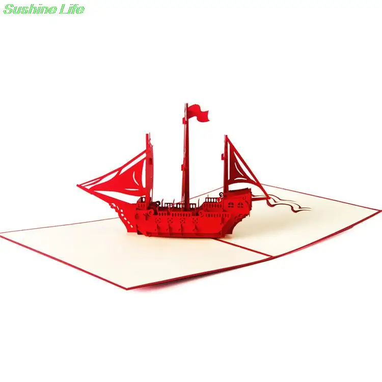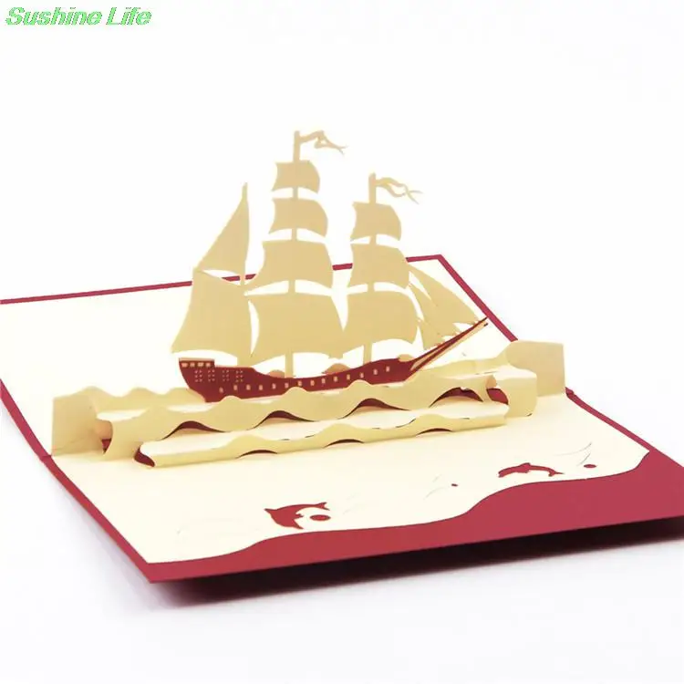 3 шт./лот sailboat 3D стоячая крафт-бумага с Киригами, лазерная резка с оригами, открытки ручной работы, подарок, открытки, Декор для дома