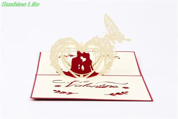 3 шт./лот, влюбленные в День Святого Валентина, 3D стоячая бумага с Киригами из крафт-бумаги, лазерная резка, открытки ручной работы, подарок, открытки, домашний декор