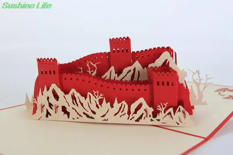 3 шт./лот great wall 3D подставка с Киригами из крафт-бумаги, Лазерная резка с оригами, открытки ручной работы, подарок, открытки, Декор для дома