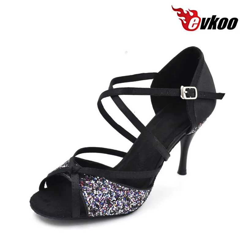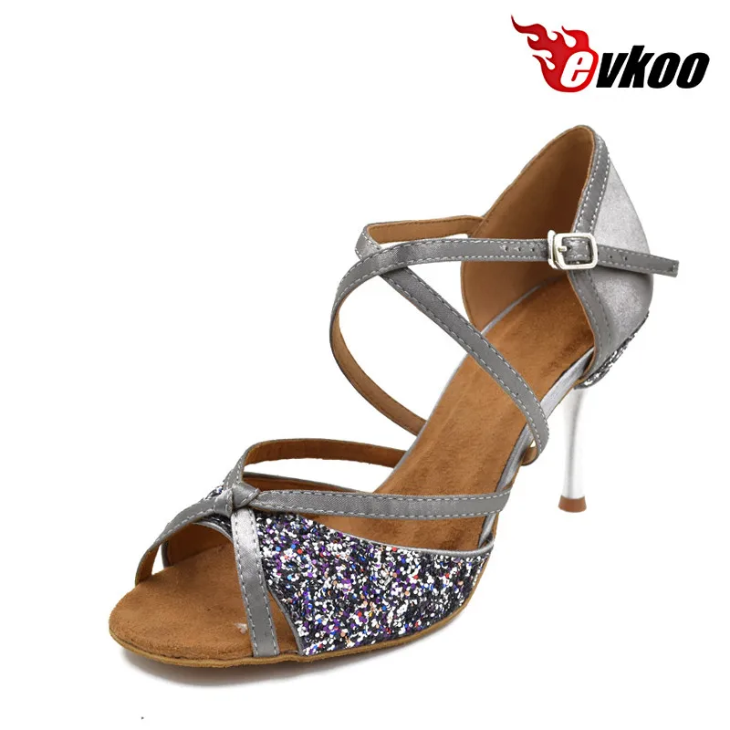 Evkoodance/2017; Пикантные Брендовые женские туфли черного и серого цвета на каблуке 8,5 см; Удобная кожаная обувь для латинских танцев; Evkoo-010