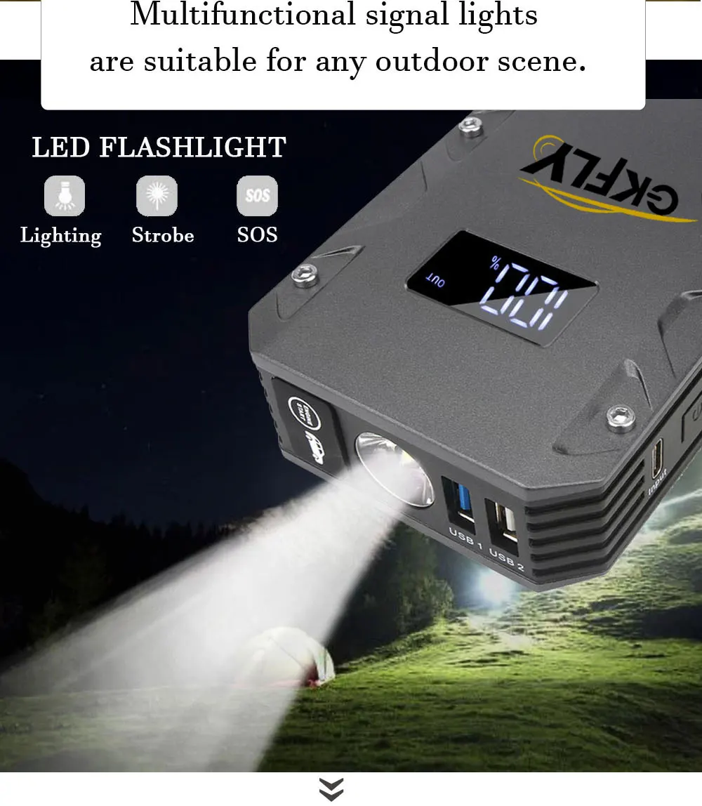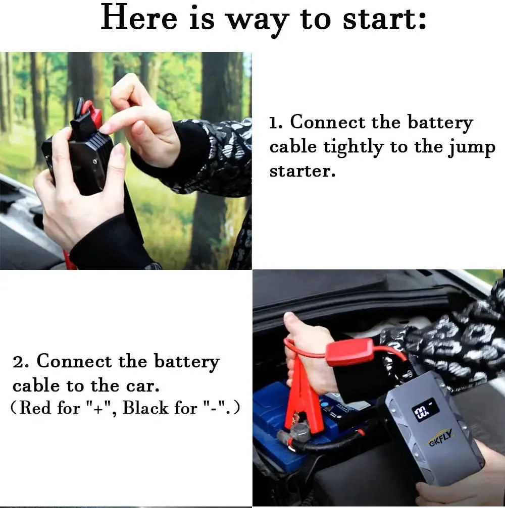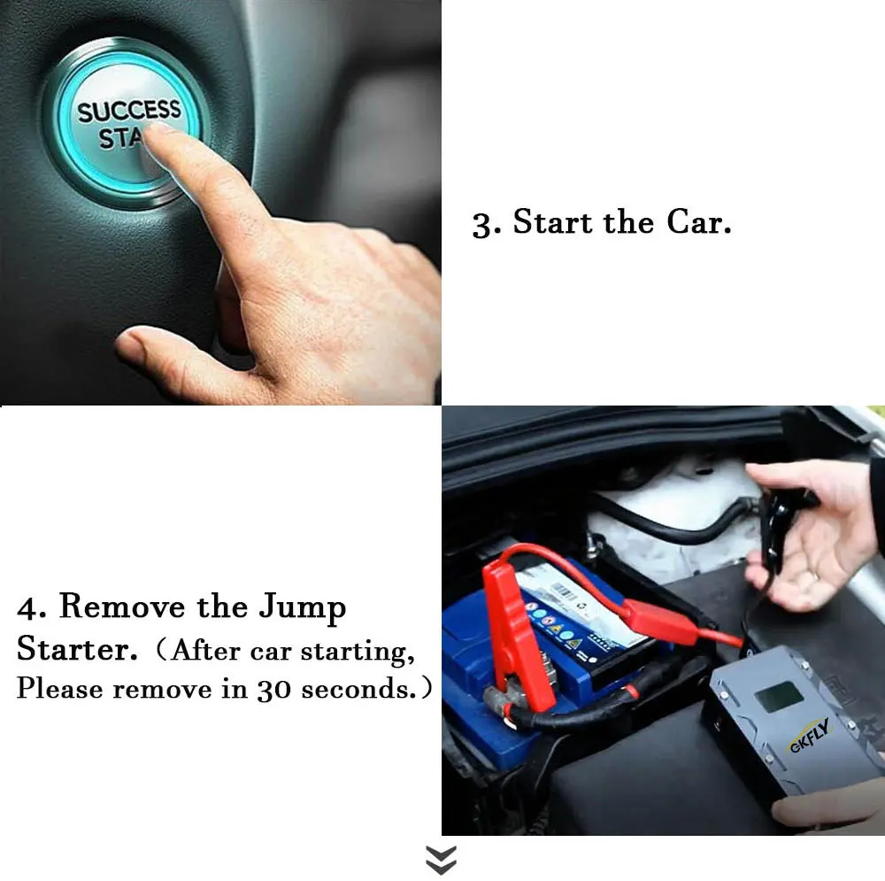 1:1500A/2000A пиковый ток, реальная емкость 20000mAh/24000mAh батареи, запуск бензиновых автомобилей 6.0L/8.0L или ниже, запуск дизельных автомобилей 4.0L/6.0L или ниже;