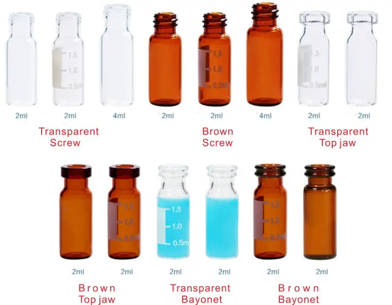 Образец бутылки имеет прозрачный, коричневый, Градуированный Прозрачный флакон. Градуированный Borwn бутылка доступна. Применяются к Agilent. Воды. Varian и Shimadzu типы автоматического пробоотборника.