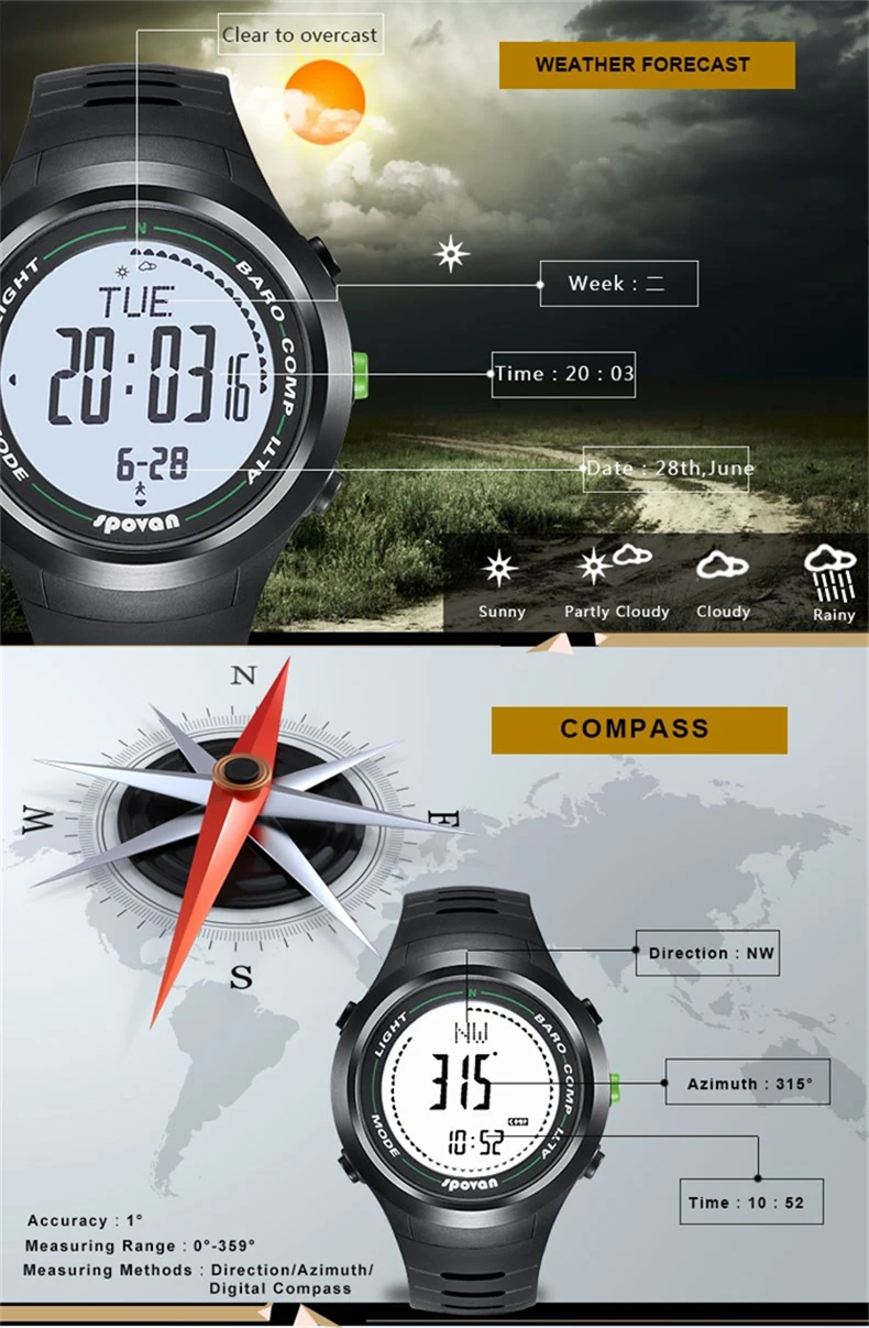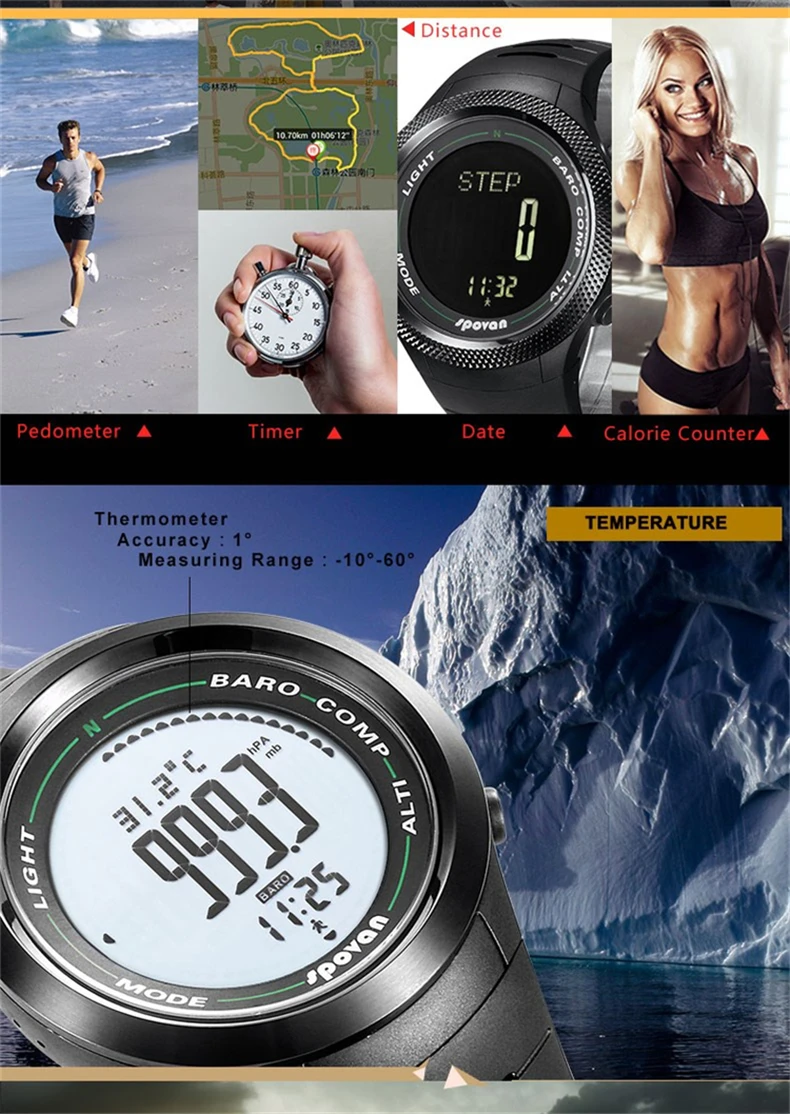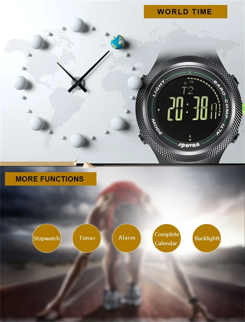 SPOVAN модные цифровые спортивные часы водонепроницаемые LED шагомер счетчик калорий термометр наручные часы мужские Relogio Masculino