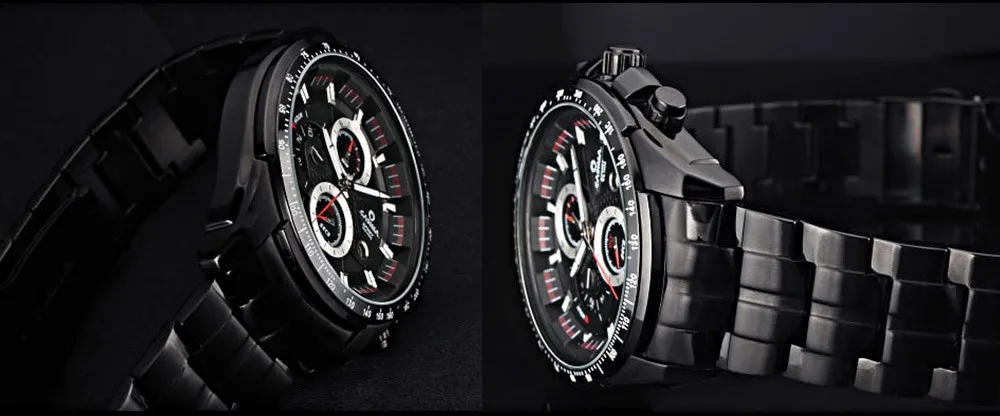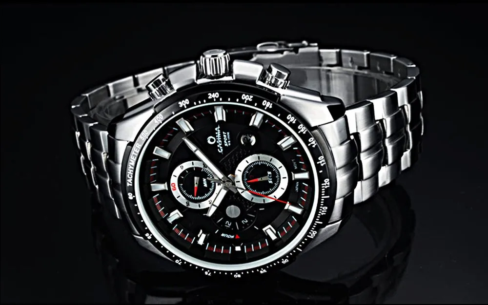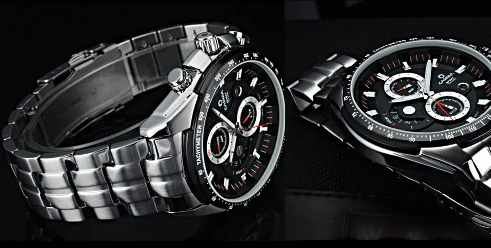 2. Круглый циферблат, три циферблата для функции хронографа, шесть рук, японский кварцевый механизм, точное время хранения