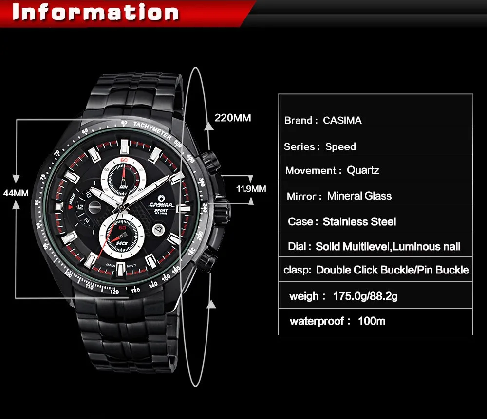 CASIMA брендовые Модные Военные часы мужские водонепроницаемые светящиеся Хронограф Календарь Спортивные кварцевые наручные часы Relogio Masculino