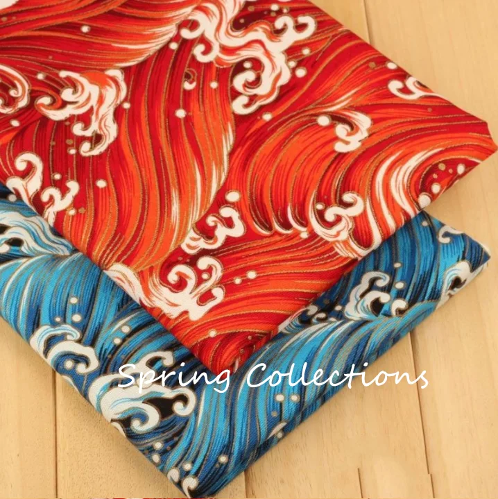 50*140 см в цветочек японский хлопок ткань синий/красный морская волна парча ткани DIY лоскутное шитье текстиль Telas Costura войлок