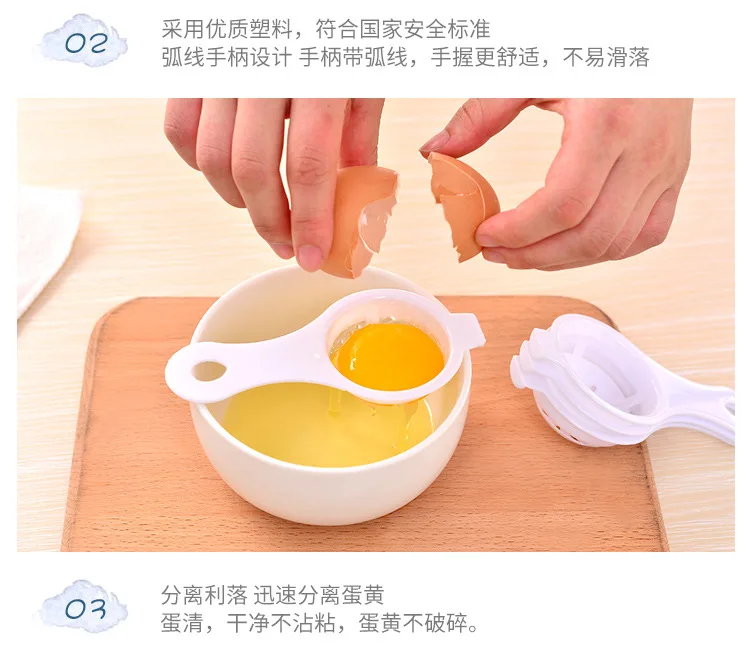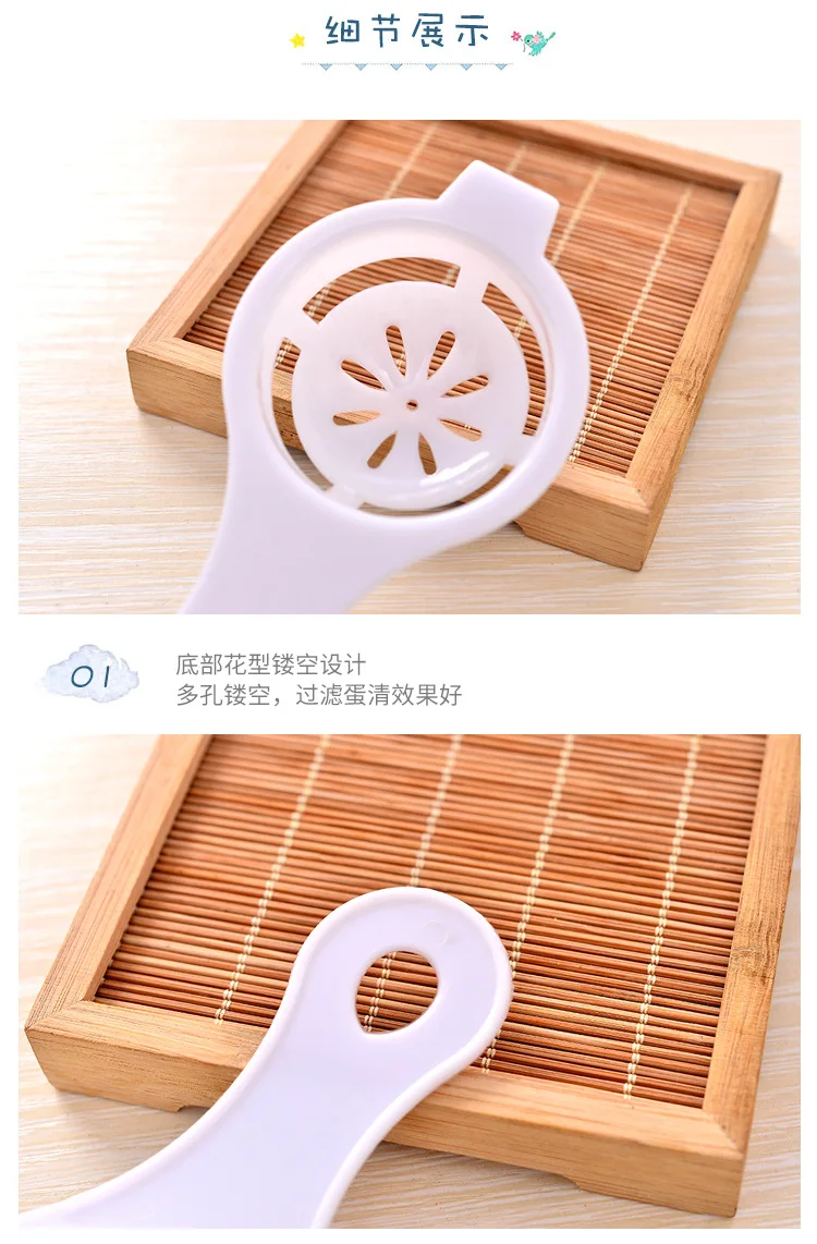 Особенности: -Абсолютно новый и высококачественный. -Изготовлен из прочного материала и умного дизайна, его легко обрабатывать, использовать и чистить. -Идеально подходит для разделения яиц и белого желтка. Хорошо использовать для приготовления торта. -Подходит для кухни, кафе, магазина тортов, отеля, ресторана. -Простой в использовании, вы просто положите Этот сепаратор на чашу, как показано на фотографиях. И разбитое яйцо на нем. -Более подробную информацию об использовании plz Следуйте изображениям, показанным здесь. Характеристики: Материал: пластик Цвет: белый Общая длина: 12 см Вес нетто: 9 г Вес: 19 г Посылка включает в себя: 5 шт. Сепаратор для яиц