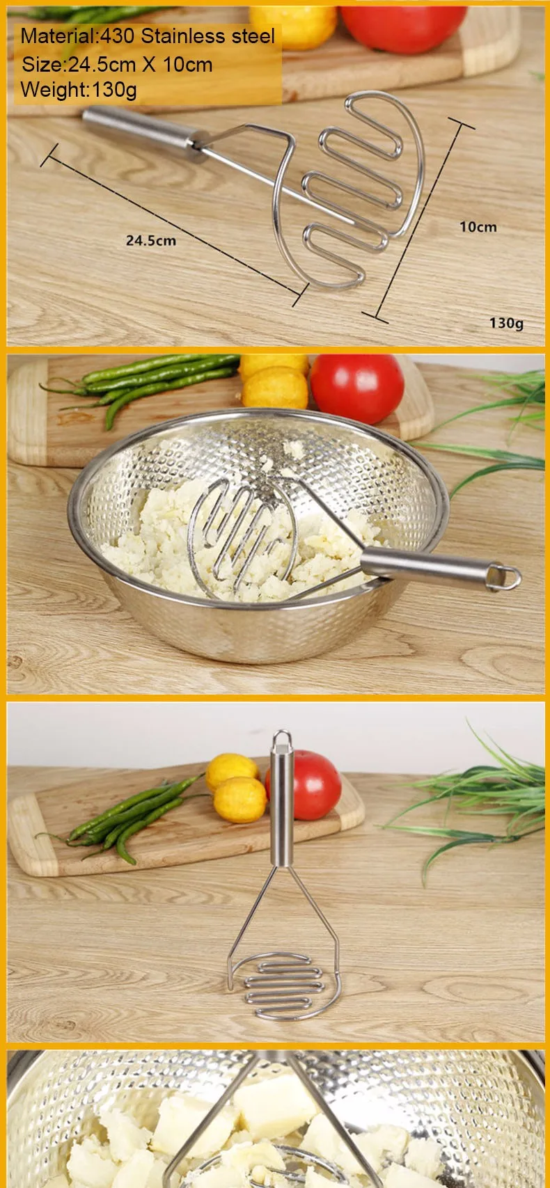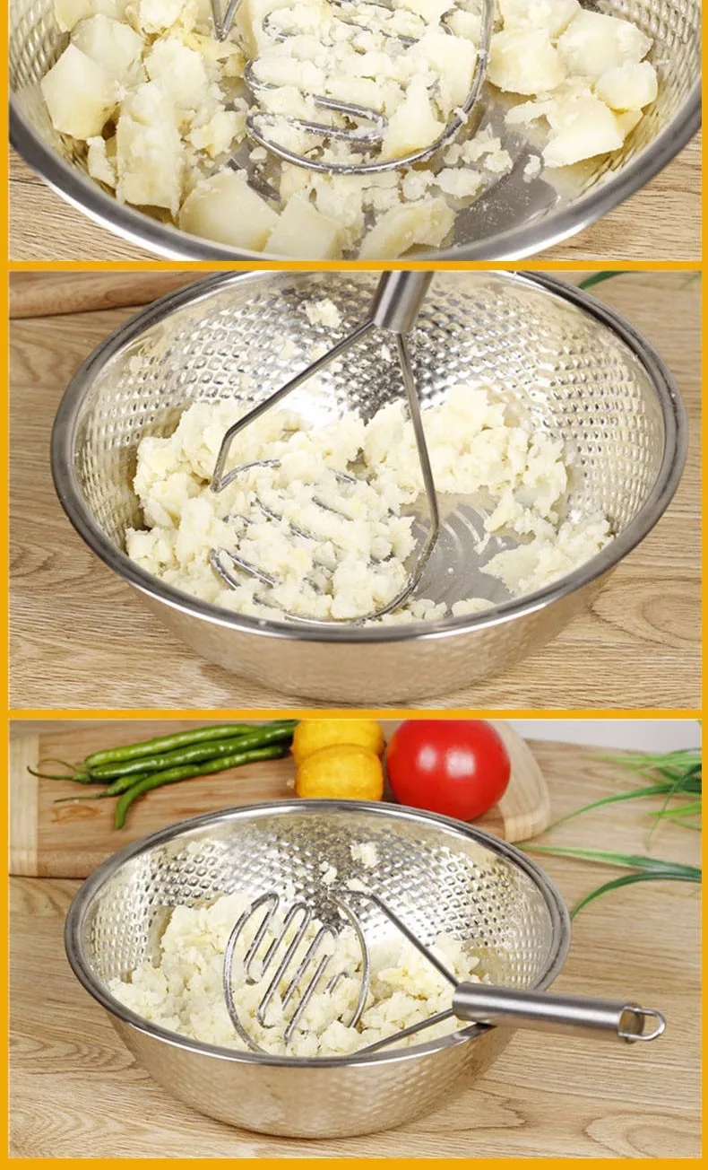 Особенности: -100% новый и высокое качество! -Приготовление кипяченой пищи становится намного проще. -Подходит для картофеля, яма, тыквы и помидоров. -Модный дизайн и высокое качество. -Очень полезный кухонный инструмент. -Удобно и легко сделать картофельный ил. Характеристики: Материал: нержавеющая сталь Цвет: серебристый Размер: прибл. 24,5 см X 10 см Вес: 130 г Посылка включает в себя: 1 * картофельный машер