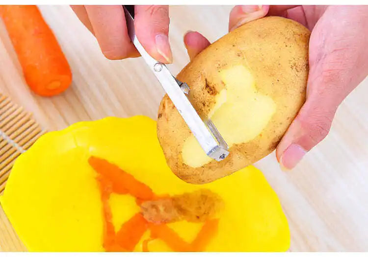 Description: 1.100% brand new and high quality. 2.With hole design in the handle,can be optionally hung on wall. 3.High quality stainless steel material,no deformation, durable in use. 4.Excellent sharpness for the peeler edge,pare fruit or vegetable with great ease. 5.Multi-purpose peeler for all kind of fruit and vegetable,a good helper in kitchen. Parameter: Material: Stainless steel. Color: As the picture shows. Size: 16cm x 8mm Weight: 28g Package: 1 * Fruit vegetable peeler.
