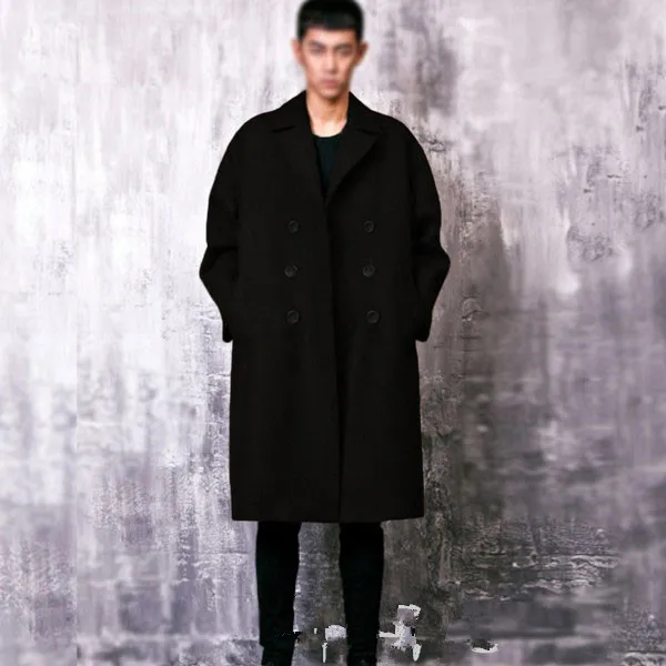 S-XXXL! 2015 Зимняя мужская одежда, коммерческое шерстяное пальто, верхняя одежда, ультра длинный мужской черный кашемировый шерстяной ТренчUSD 265,00/шт.