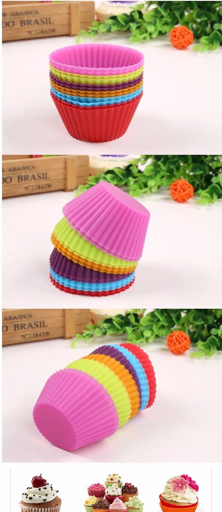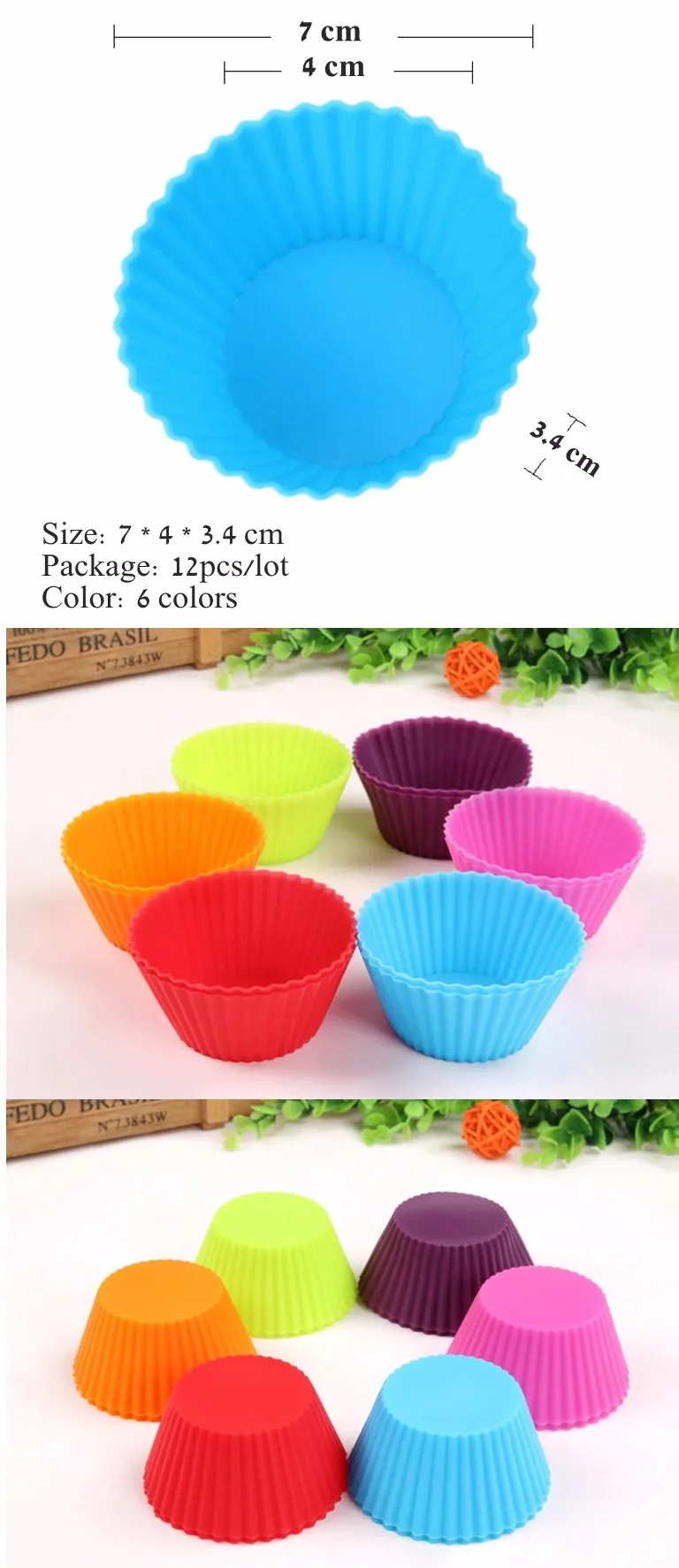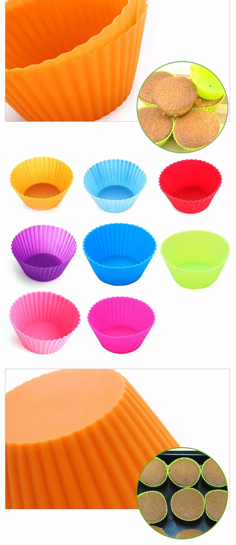 Спецификация Название продукции: силиконовая форма для маффины желе Материал: силикон Использование: подходит для изготовления пирожных, маффинов, кексов, желе, шоколада и т. д. Цвет: красный, фиолетовый, желтый, зеленый, синий, розовый, оранжевый Размер: как показано на фото Вес: 100 г/упаковка Посылка: 12 шт. Сертификация качества: FDA, SGS Характеристика 1. Использование высококачественных силиконовых материалов и сертификация FDA и SGS 2. Допустимый диапазон температур: -40 ~ 220 ℃ 3. Безвкусный, нетоксичный, пыленепроницаемый, прочный, Не проницаемый, легко чистится 4. Безопасно для использования в печах, микроволнах, посудомоечных машинах и холодильниках 5. Легко чистить