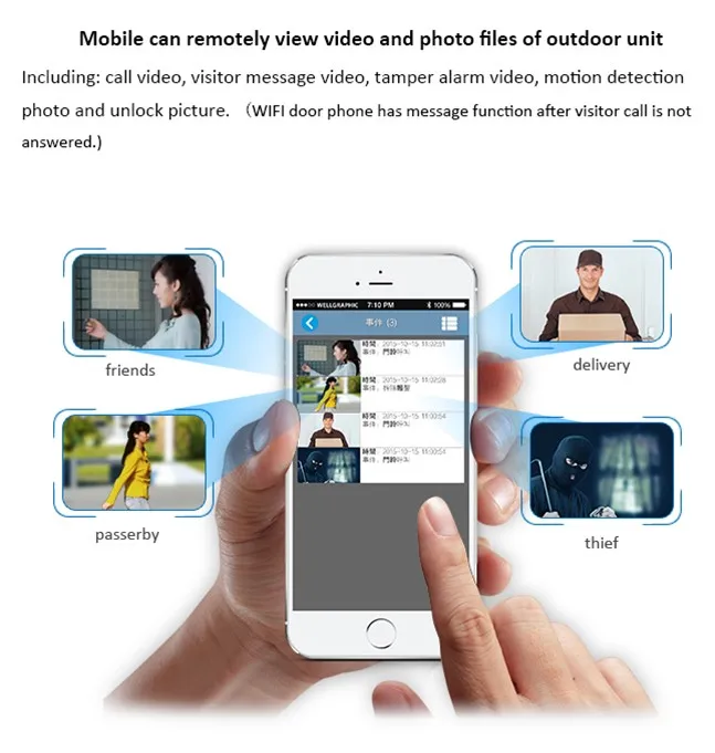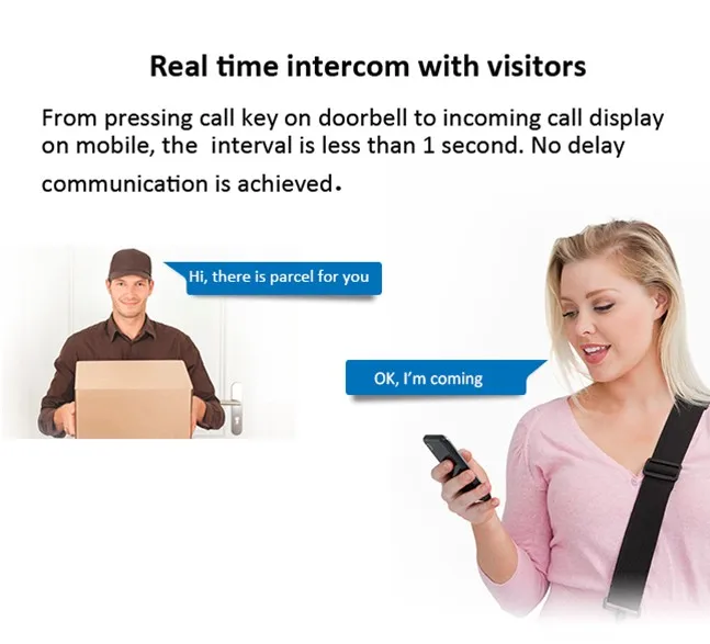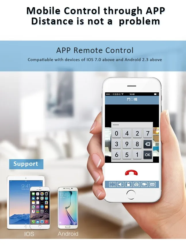 4.Smart phone can support monitor , video intercom ,remote open door,photos taken & VideoRecorded manually;
