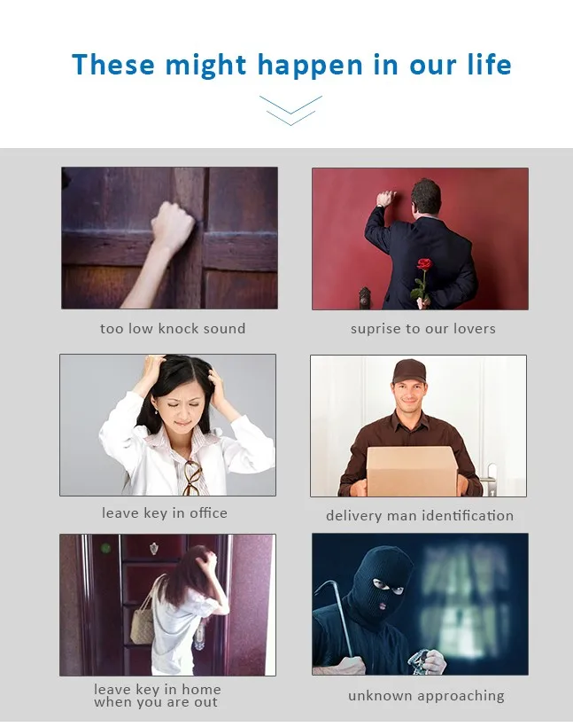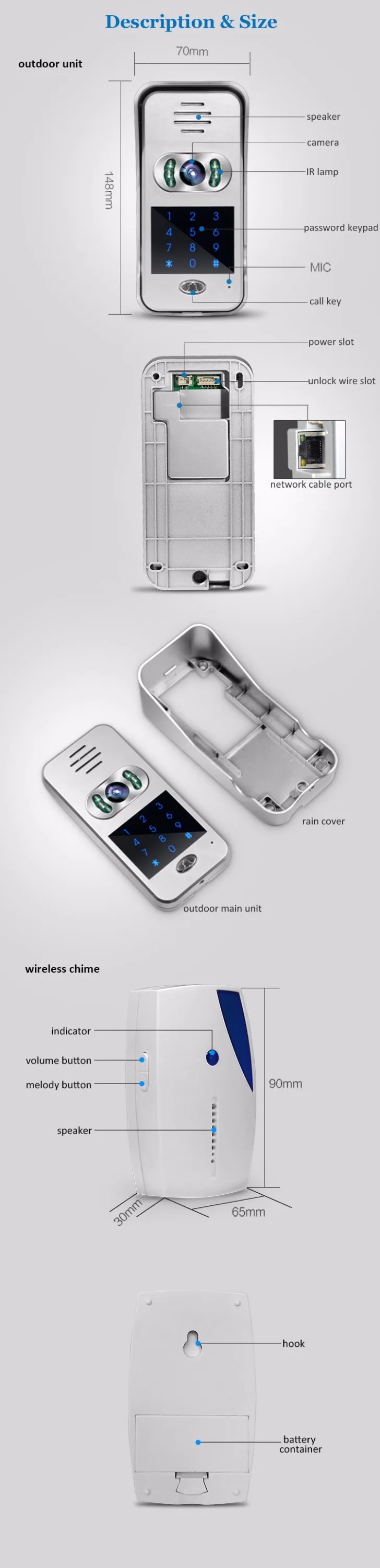8. Tamper alarm/motion detection,call,leaving messages and open door /illegal open door information trigger be sent to mobile