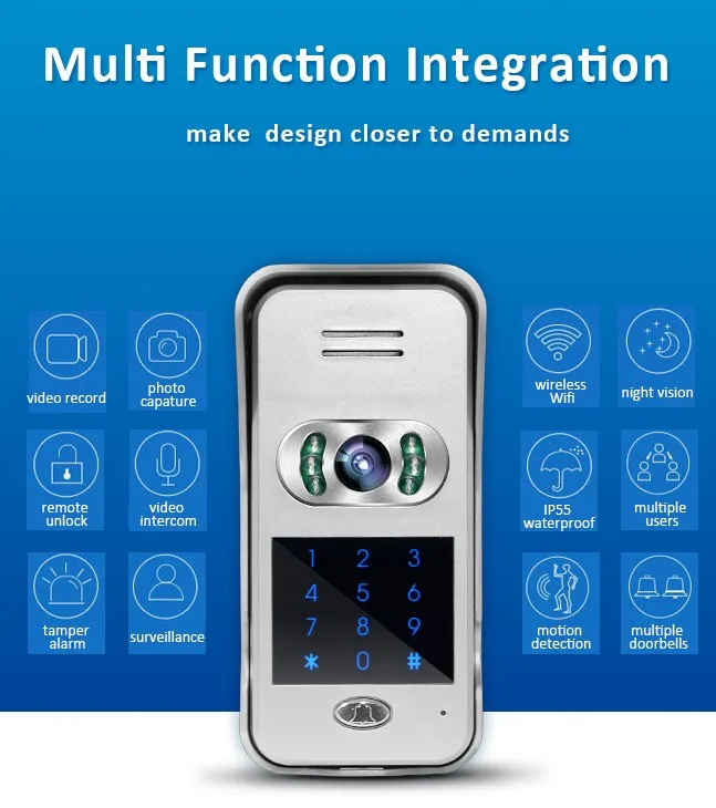 2016 New Arrival video door phone IP doorbell WiFi door bell with keypad