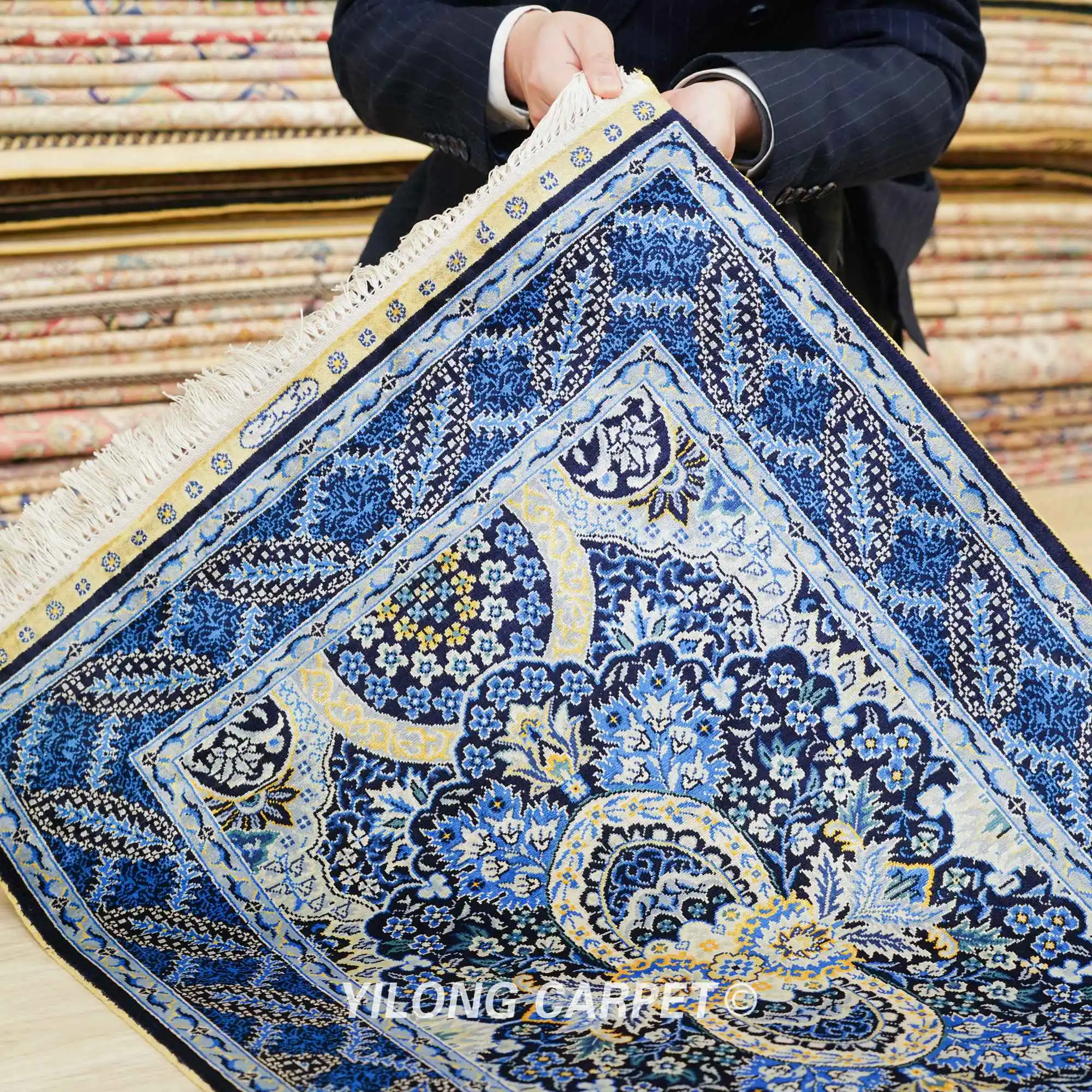 Этот ковер на 100% ручной вязки, гораздо более ценный, чем ковер машинного производства