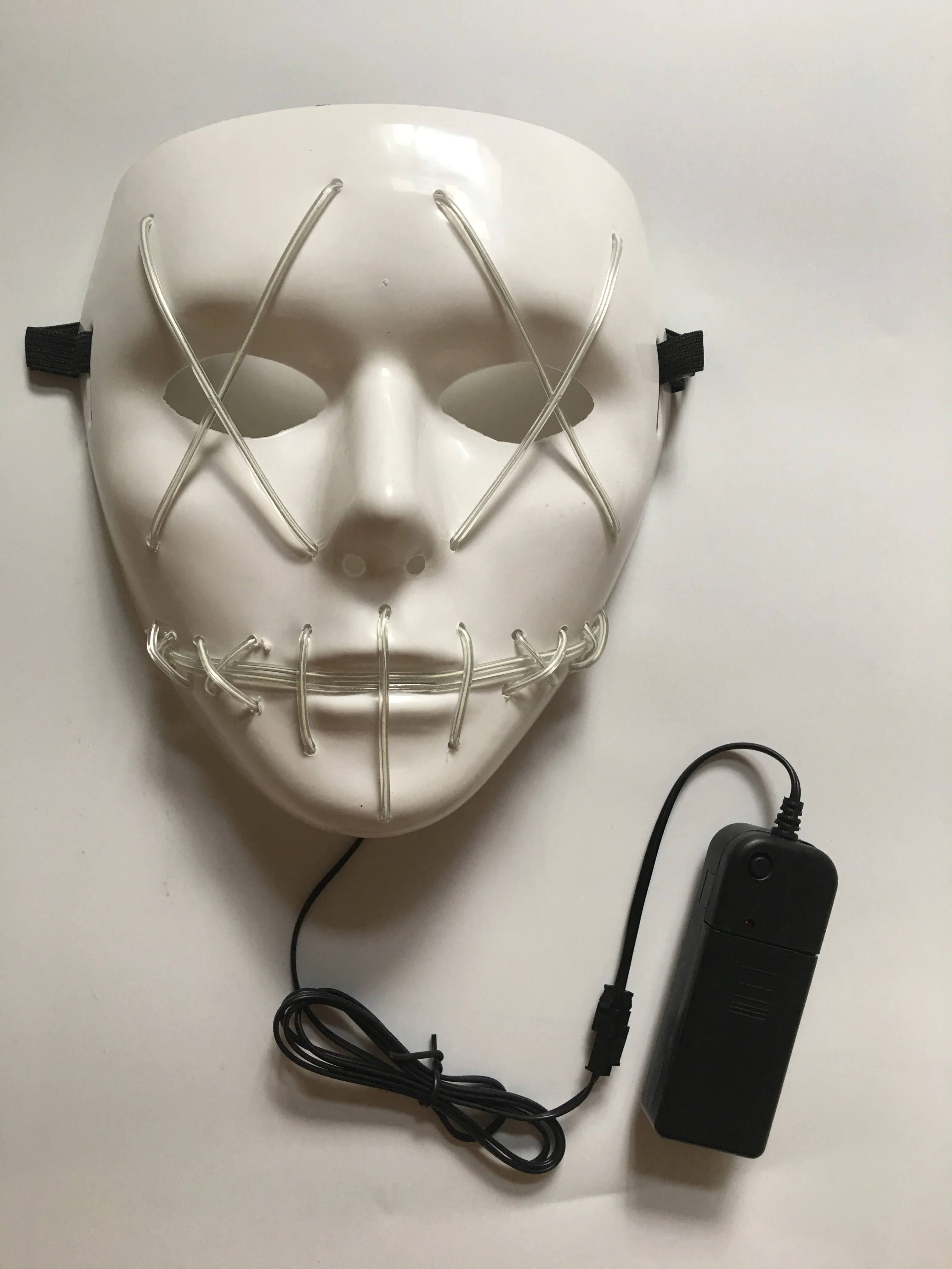 ** Мигающая маска питается 2 батареями АА. Доставка не включает батарейки.