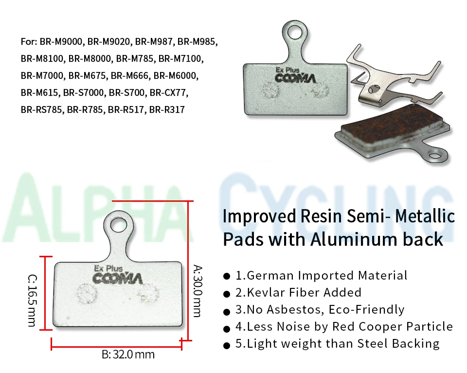 Bicycle Disc Brake Pads for SHIMANO XTR, DEORE XT, SLX, DEORE, ALFINE