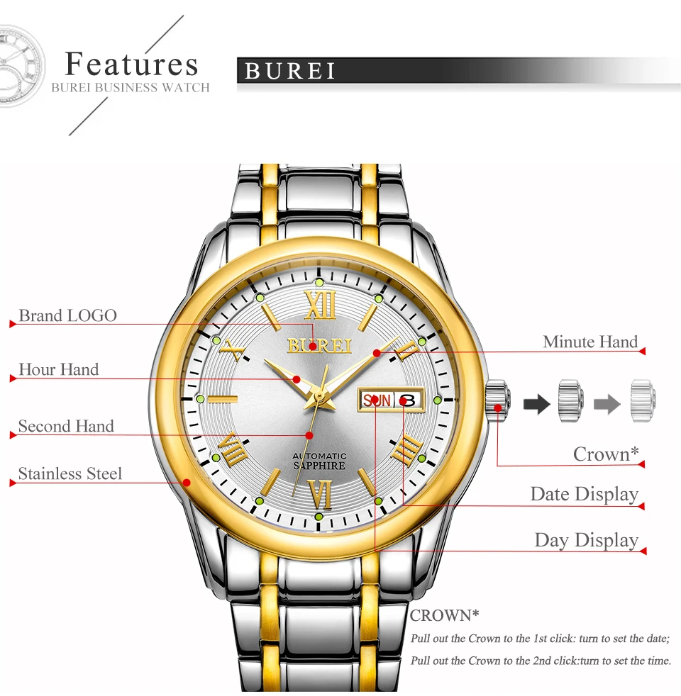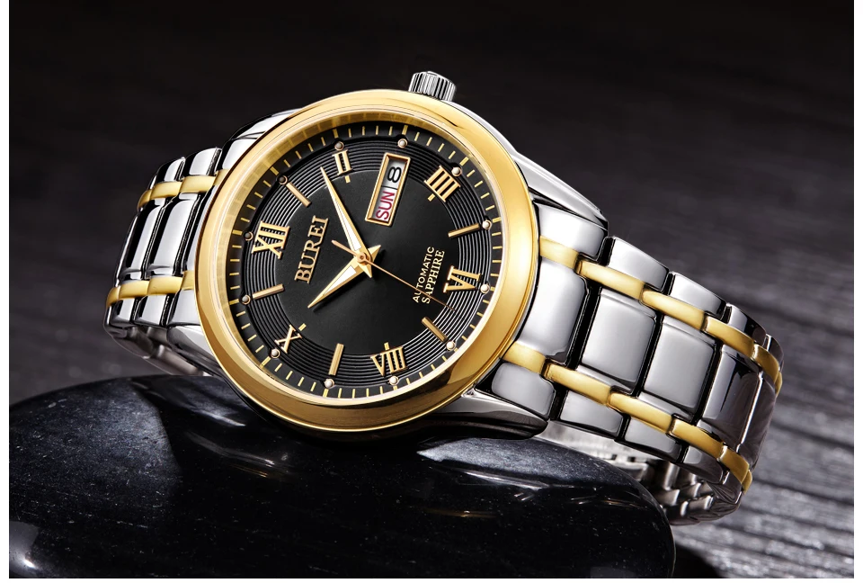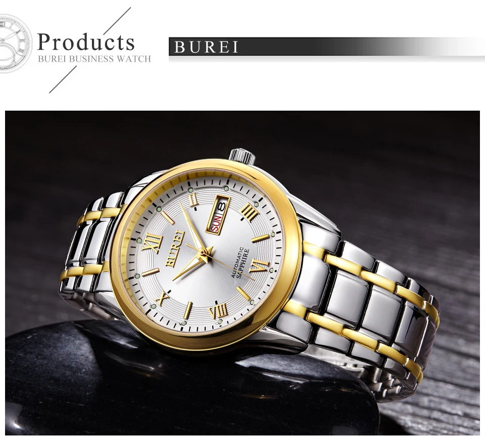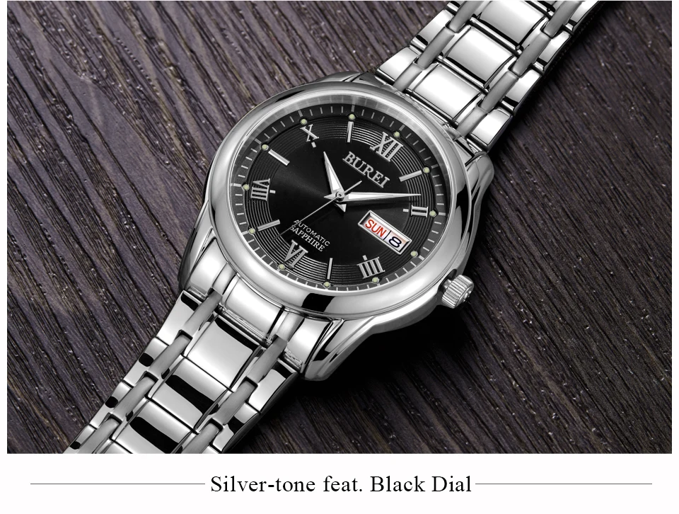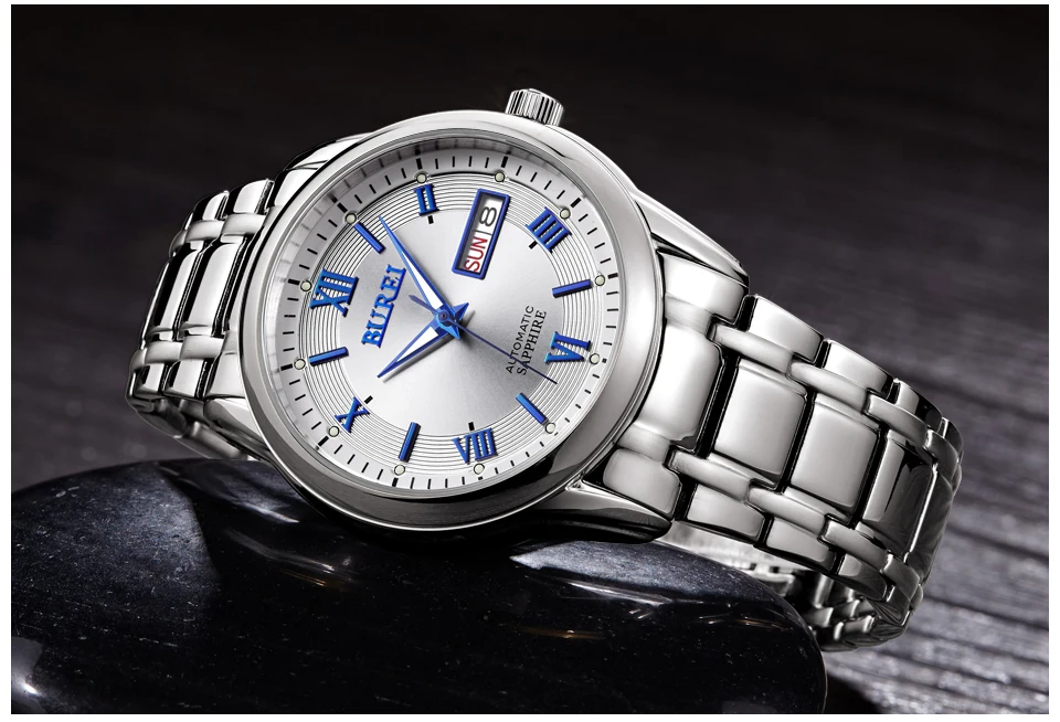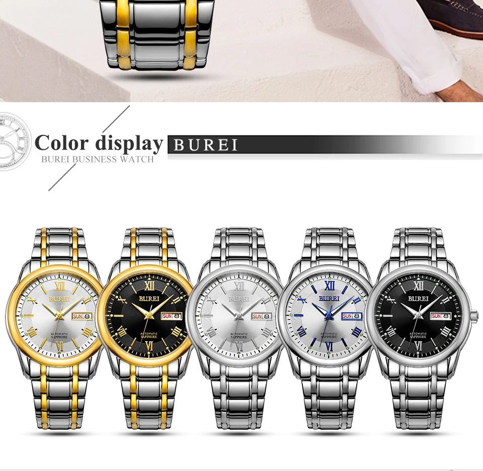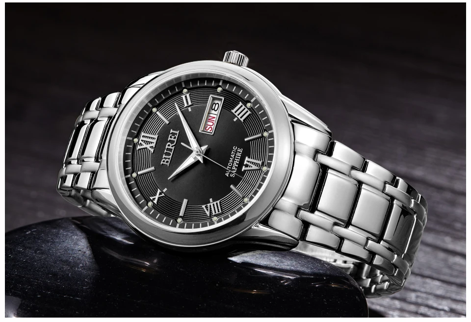 Бренд BUREI, модные механические часы, Роскошные водонепроницаемые часы с календарем, деловые Автоматические наручные часы для мужчин, мужские часы, Montre Homme