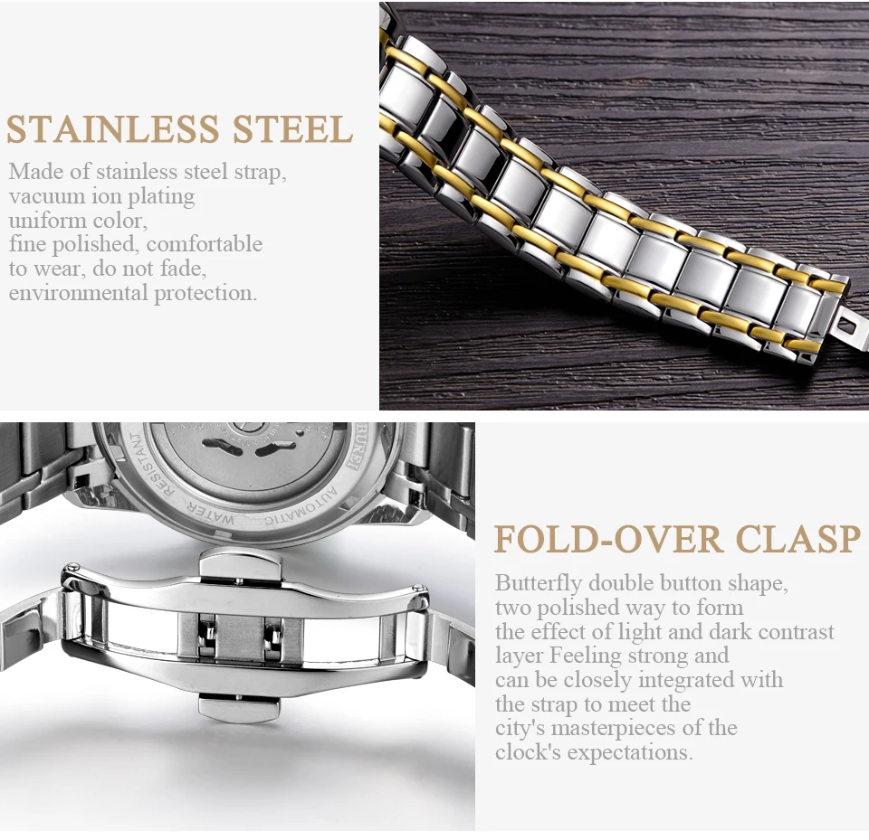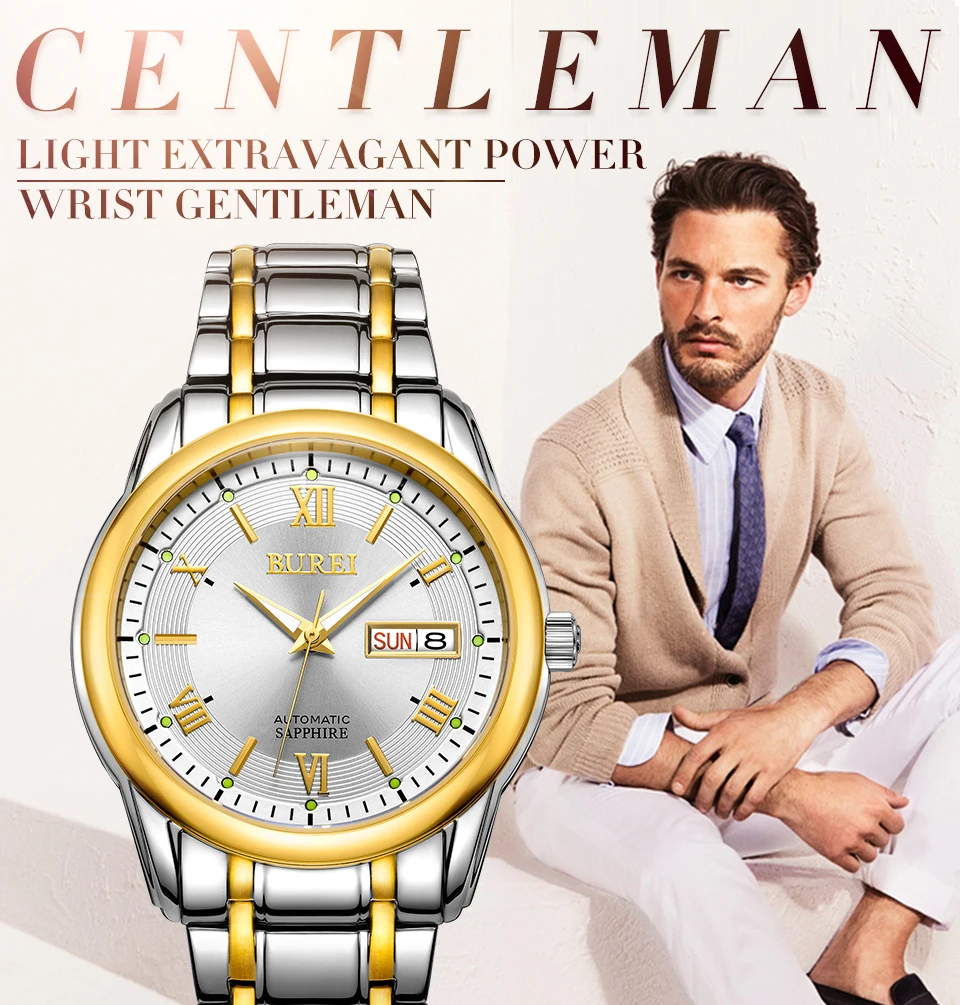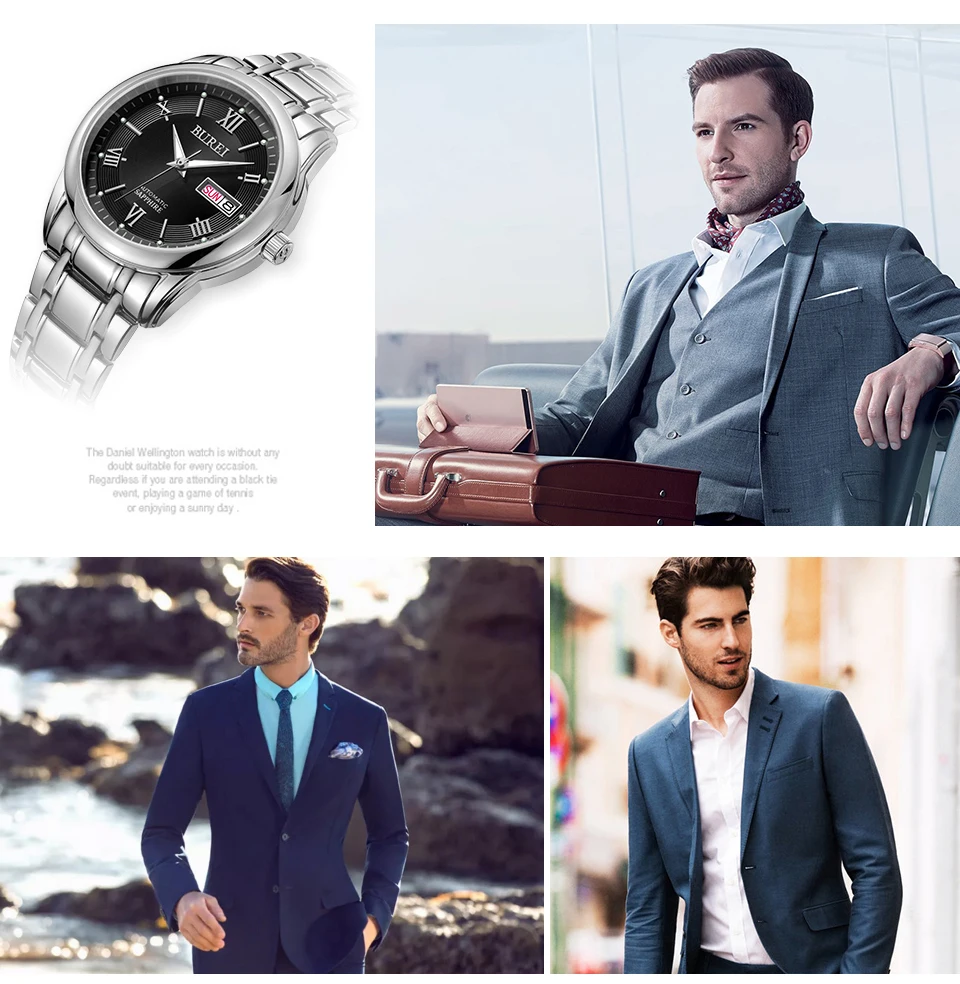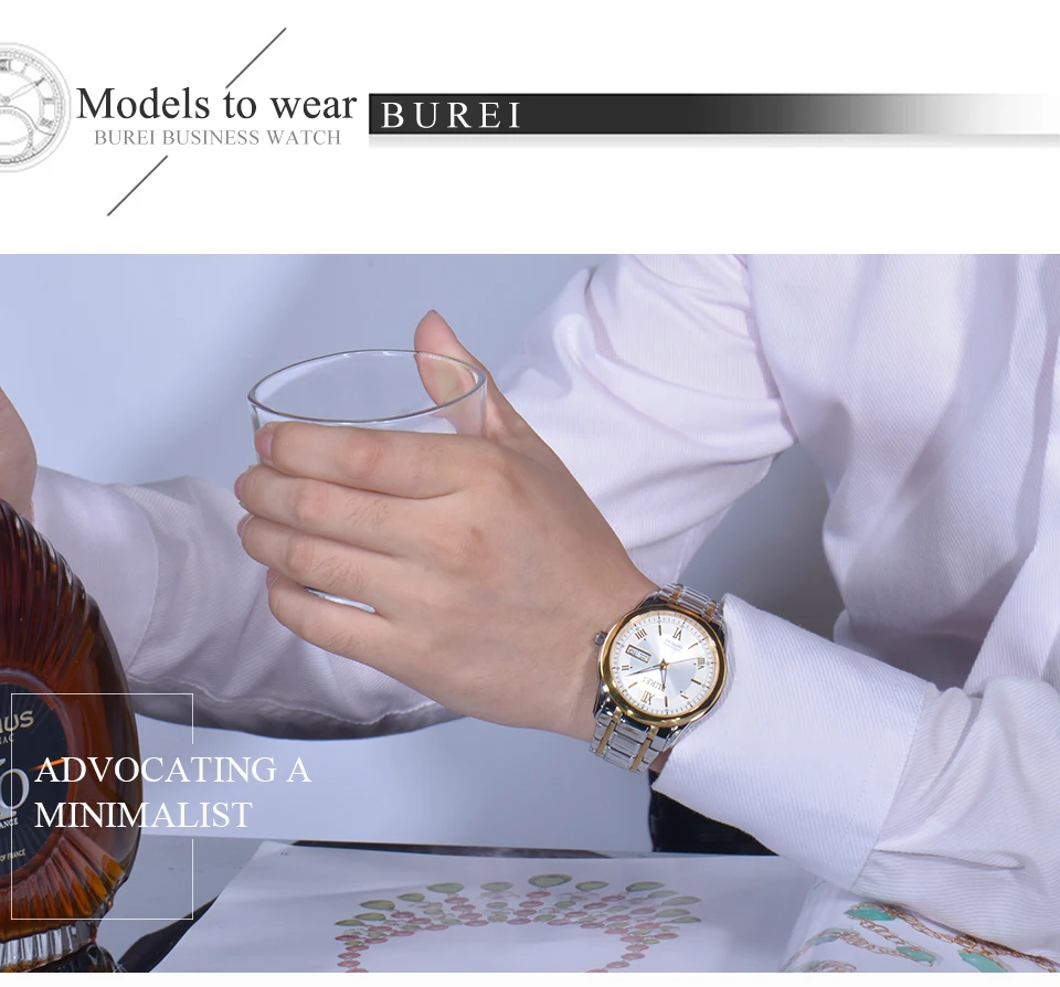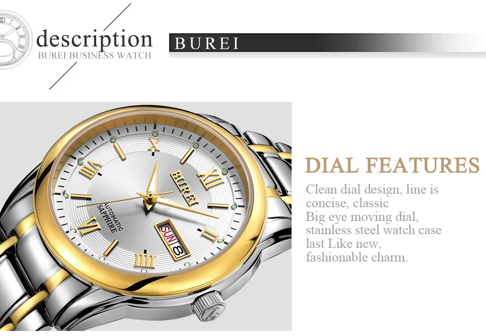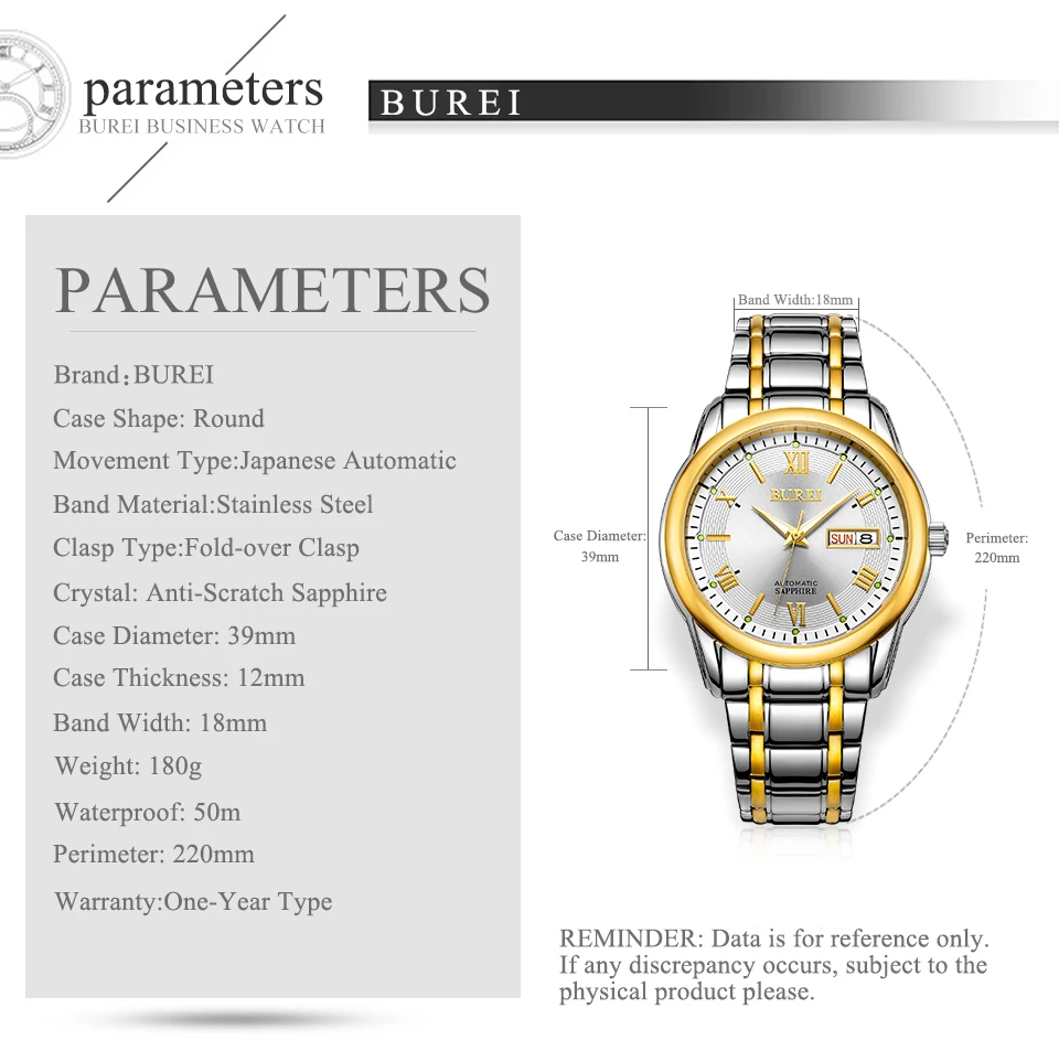 Бренд BUREI, модные механические часы, Роскошные водонепроницаемые часы с календарем, деловые Автоматические наручные часы для мужчин, мужские часы, Montre Homme