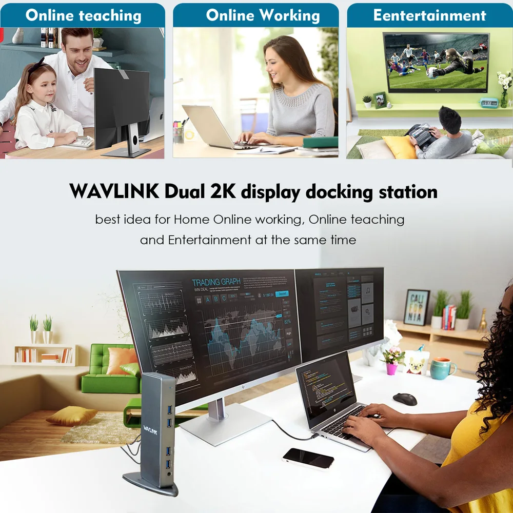 С помощью одного ноутбука вы можете выполнять самые разнообразные задачи: от зарядки и обновления мобильных устройств до наблюдения за своим домом с помощью камеры безопасности до завершения системы домашнего кинотеатра. К сожалению, большинство ноутбуков не имеют достаточно портов для подключения всего необходимого. Док-станция Wavlink позволит решить вашу проблему. Устройства остаются постоянно подключенными, позволяя вам решить проблемы с портами ноутбука, а также устраняет проблемы постоянного повторного подключения периферийных устройств. Вы даже можете аккуратно закрепить док-станцию под вашим ноутбуком, чтобы создать Полноразмерное рабочее место для гостиничного стола, которое будет организовано и беспорядок.