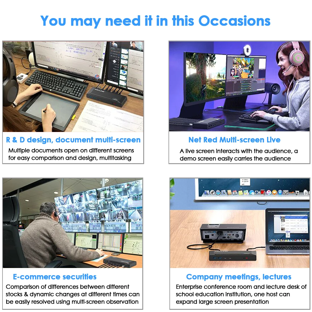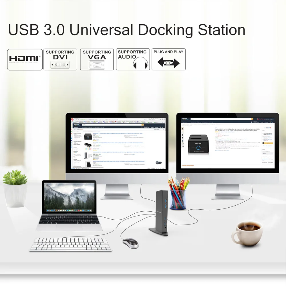 С помощью этой одной док-станции для ноутбука вы можете подключить до 6 устройств, два монитора (расширяемый до 6 мониторов с дополнительным оборудованием) и динамики питания с помощью всего одного usb-кабеля, подключенного к ноутбуку, PC или Surface Pro! При использовании с системой Windows 10, 8,1, 8,7 и legacy XP, вы можете наслаждаться удобством функции plug and play без установки драйверов. Вы также можете использовать эту док-станцию для ноутбука с MAC OS 10,2 до 10,8 с драйвером. Технология Hot plug позволяет подключать и отключать периферийные устройства и аксессуары без проблем с перезапуском.