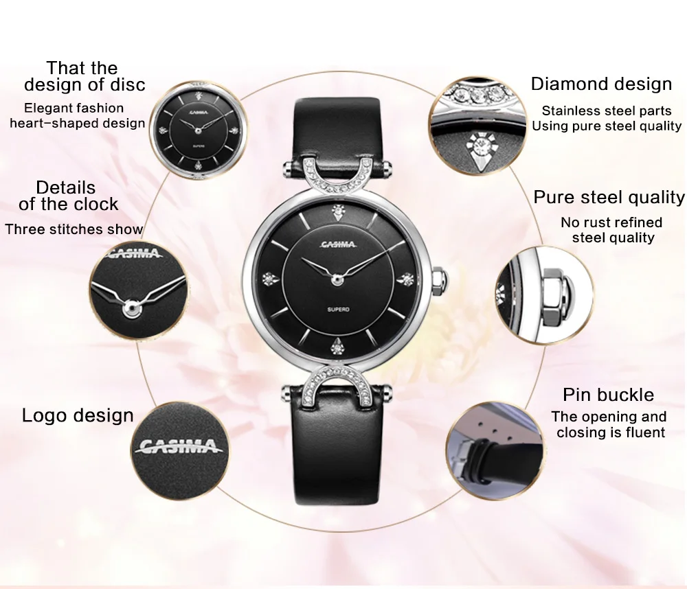 Relogio Feminino CASIMA Роскошные Брендовые женские часы модные водонепроницаемые кожаные женские повседневные кварцевые наручные часы цвета розового золота
