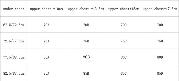 Size:70B=32B,70C=32C,75B=34B,75C=34C,80B=36B,80C=36C,85B=38B,85C=38C,90B=40B,90C=40C