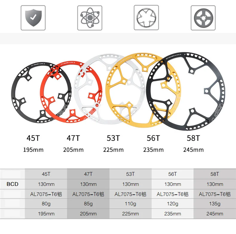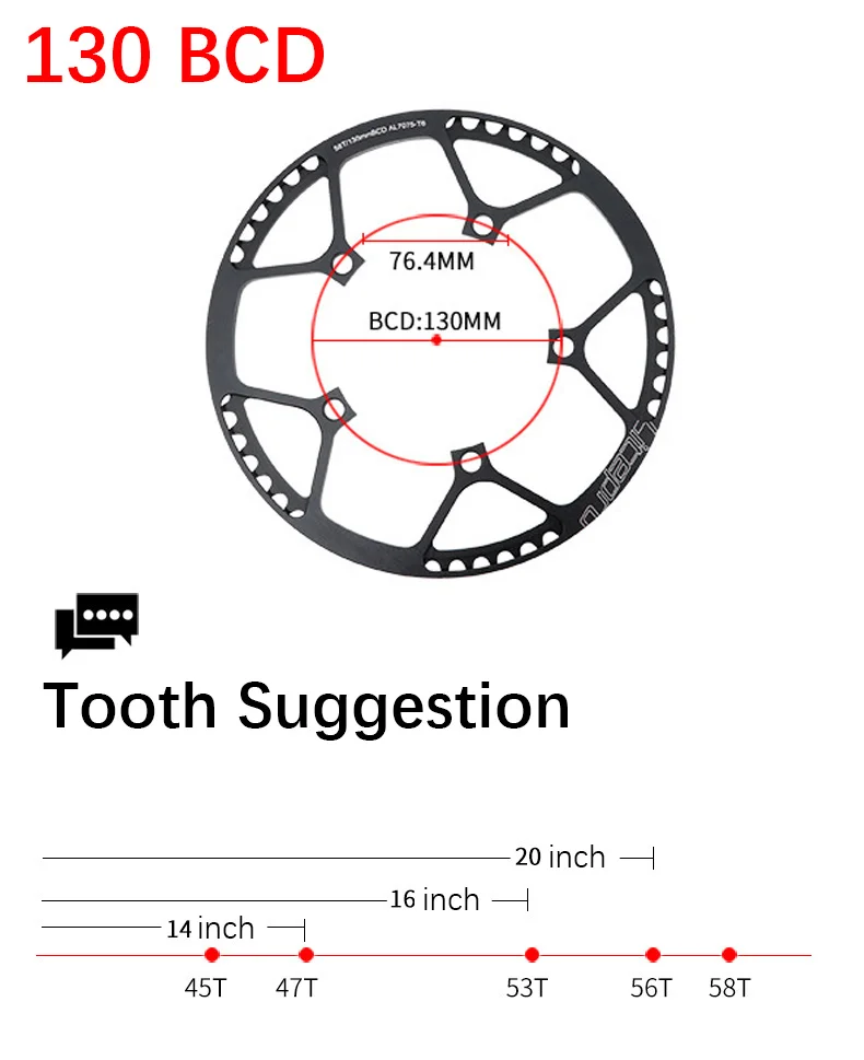 Кольцевой зуб цепи: 45T, 47T, 53T, 56T, 58T