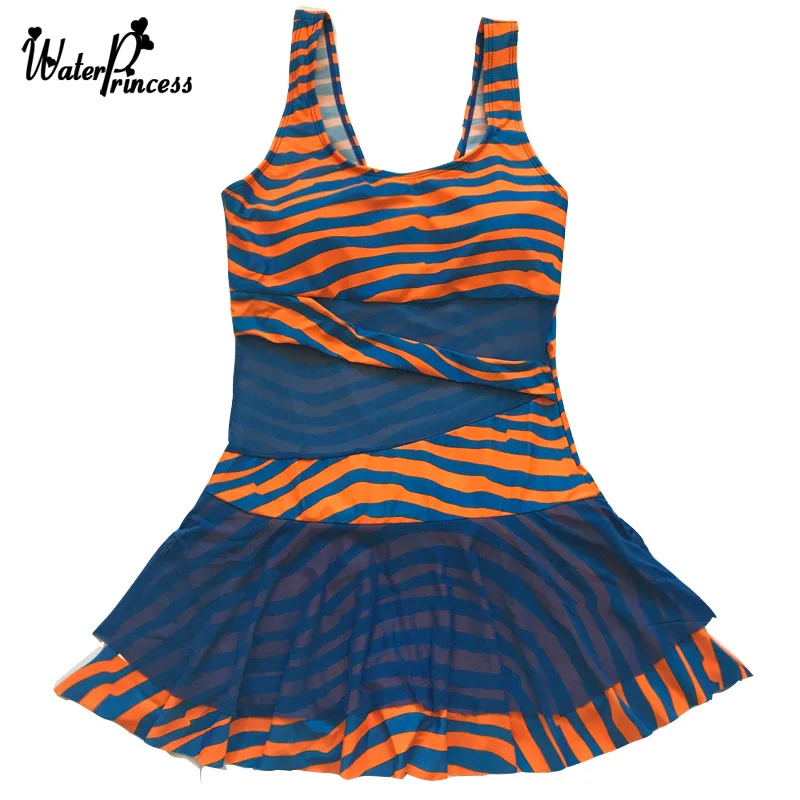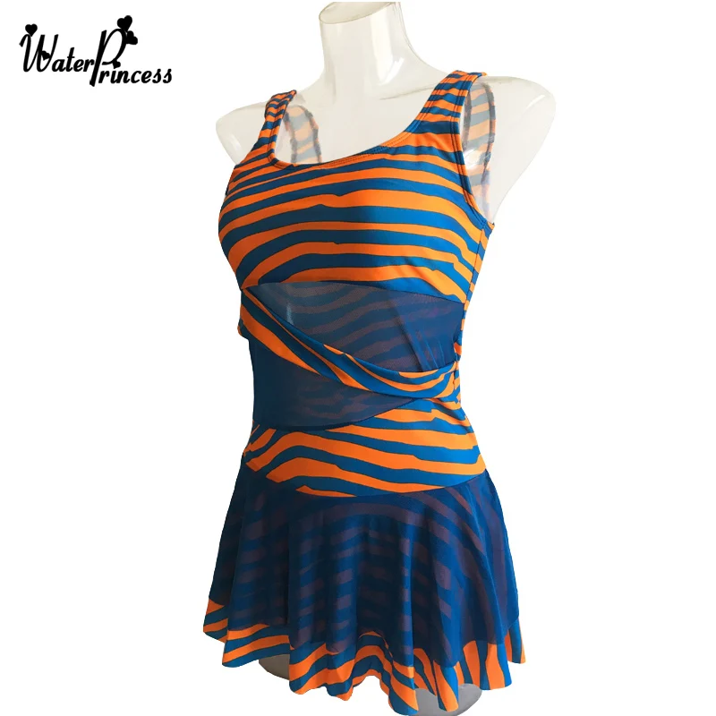 Женский купальник в полоску, Цельный купальник с юбкой, сексуальный сетчатый купальник с цветочным принтом большого размера, L-5XL бюстгальтер с подкладкой, купальный костюм, 2019 Размер: L/XL/2XL/3XL/4XL/5XL