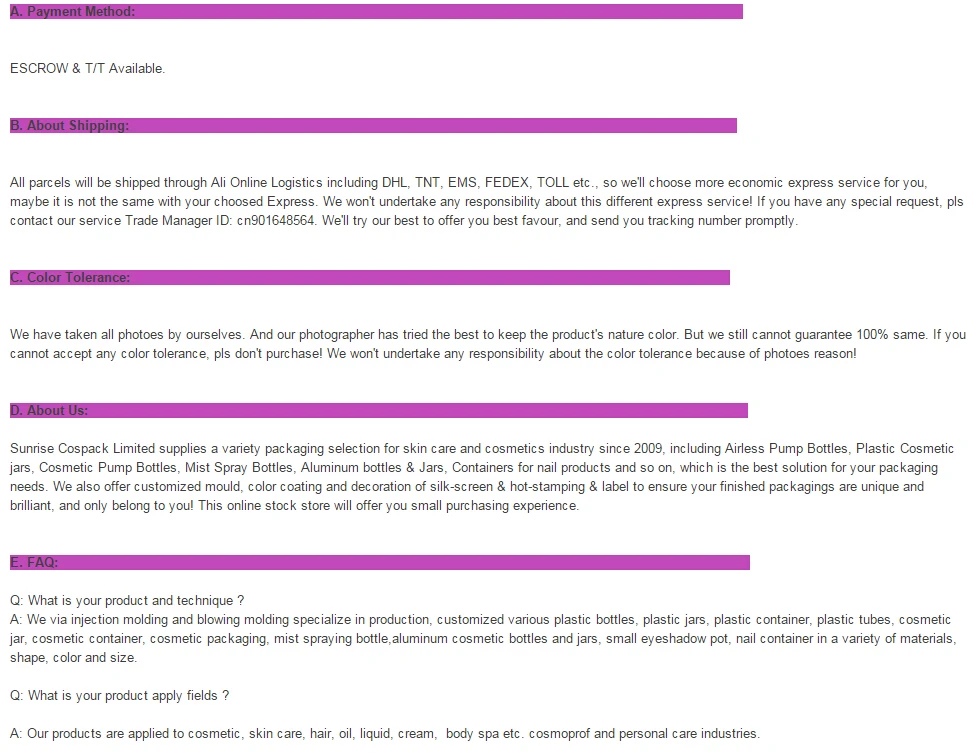 Материал банки: стеклоМатериал крышки : PlaticЦвет банки: ПрозрачныйЦвет крышки : БелыйФорма: круглая Емкость: 15 г Размер: полная высота 36 мм*Диаметр 43 мм * высота максимальная печать 13 ммПримечание: Пожалуйста, оставьте сообщение о цвете, в противном случае мы отправим случайным образом. Спасибо за сотрудничество.