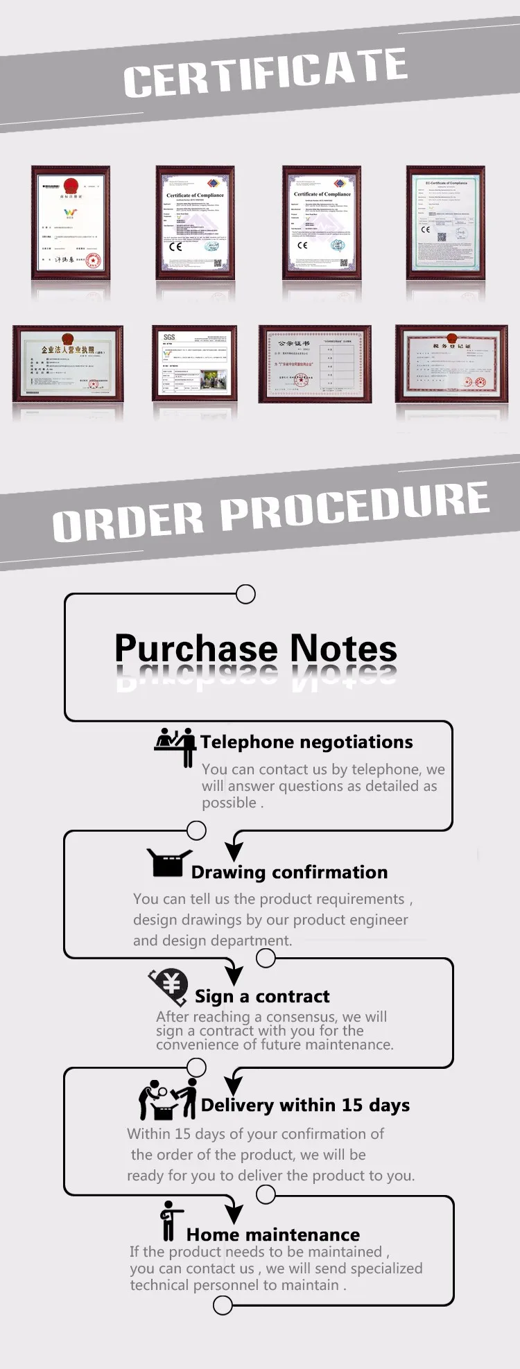 1. Мы обеспечиваем 1 год гарантии. Если товар поврежден, пожалуйста, сообщите нам в течение 3 рабочих дней с момента доставки.