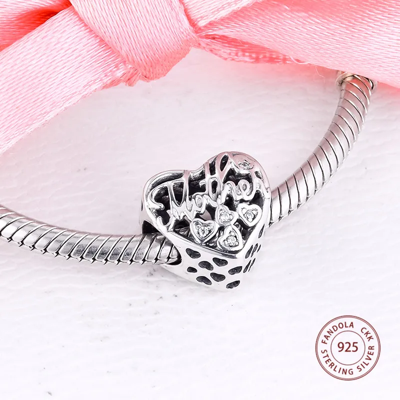 Модные подвески в виде сердца для матери и сына из серебра 925 пробы, подходят для браслетов Pandora, женские бусины «сделай сам» для изготовления ювелирных изделий