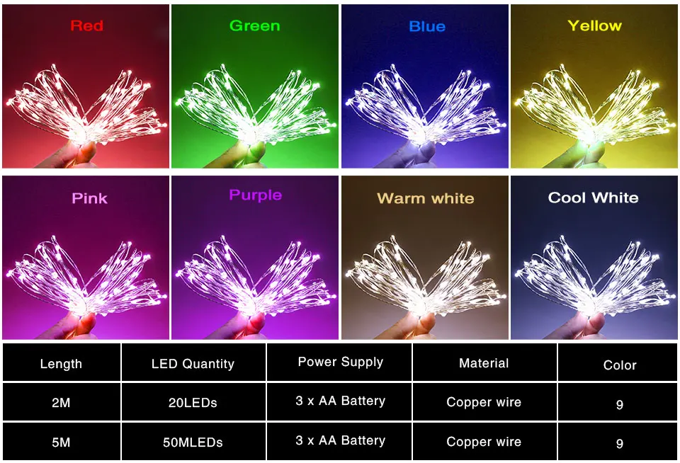 Количество СВЕТОДИОДНЫЙ: 2 метра 20 светодиодный s / 3 метра 30 светодиодный s / 5 метров 50 светодиодный s / 10 метров 100 светодиодный s