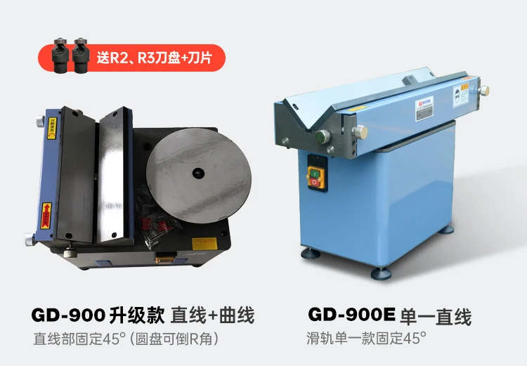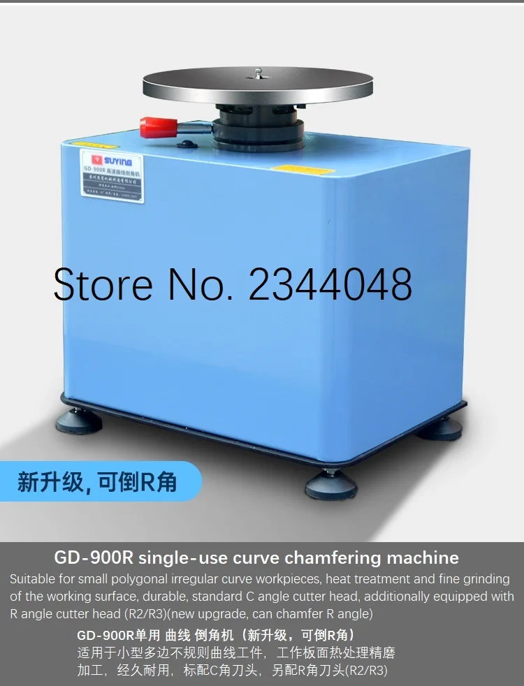 GD-900R single-use curve chamfering machine (new upgrade, can be chamfered R angle): suitable for small polygonal irregular curve workpieces, heat treatment and fine grinding of the working surface, durable, standard C angle cutter head, additionally equipped with R angle cutter head (R2/R3).
