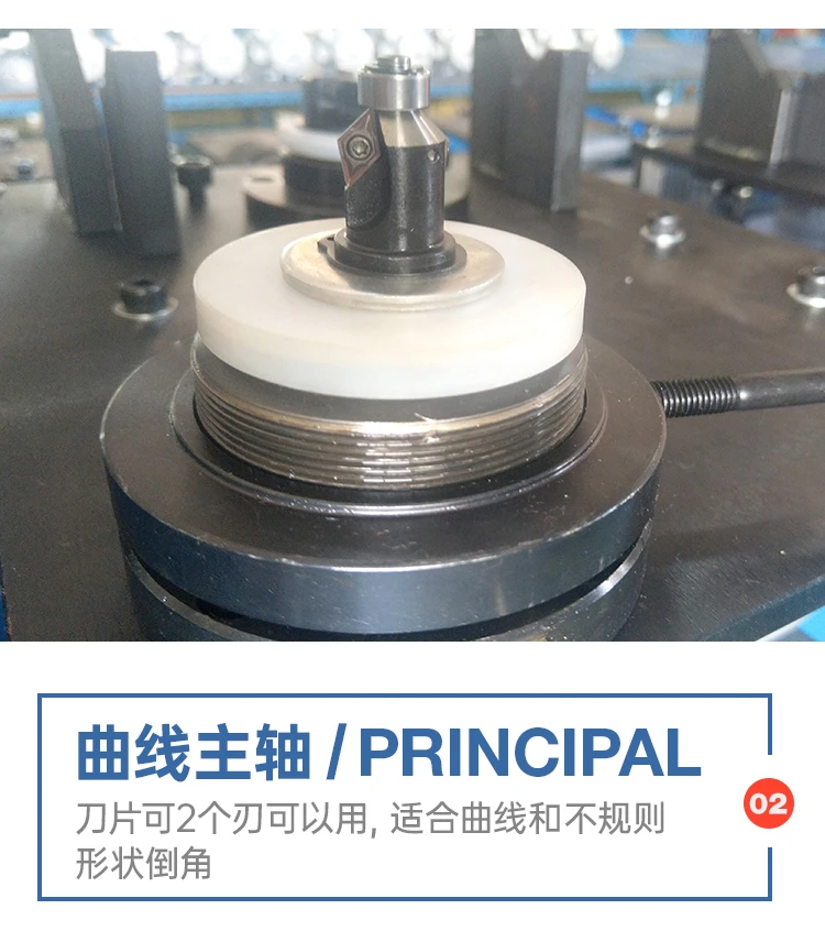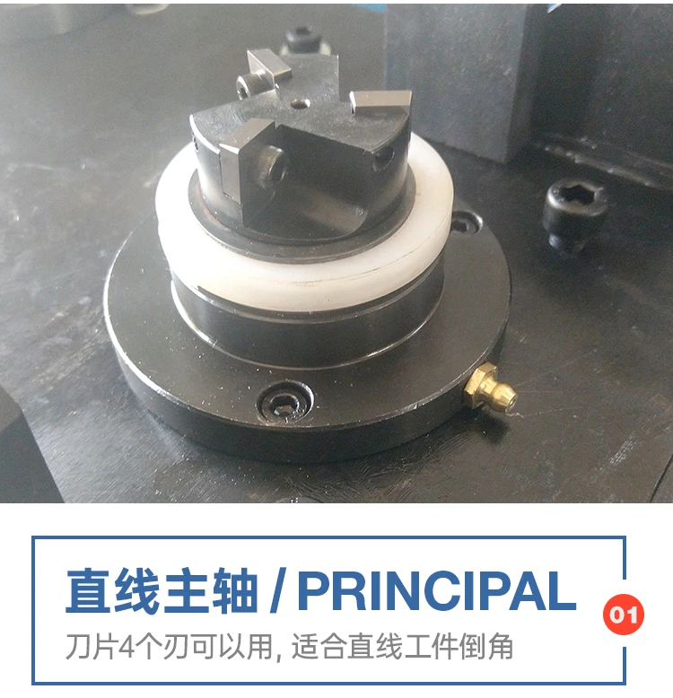 GD-900D Lengthened Compound Chamfering Machine: The linear part has its own sliding rail, which can be fixed or slidable. The sliding chamfering does not damage the surface of the workpiece, and the work is easier. The linear sliding rail travel is 540m. The R angle version is equipped with an R angle cutter head (R2/R3).