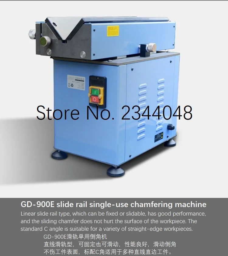 GD-900E slide rail single-use chamfering machine: linear slide rail type, which can be fixed or slidable, with good performance, sliding chamfering does not hurt the surface of the workpiece, and the standard C angle is suitable for a variety of straight-edge workpieces.