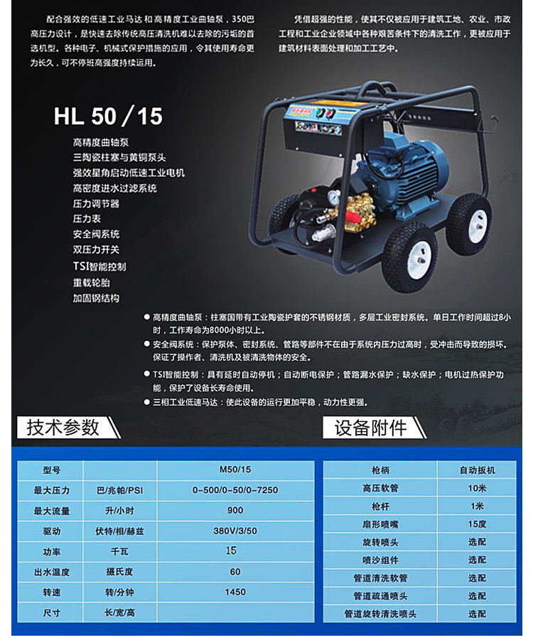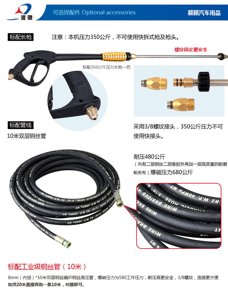 7250PSI 500BAR15.4л/мин, 4GPM (США)14003WZ-181411KW8 мм x 10 м130 Особенности: 1. 8 мм x 10 м стальная оплетка шланг высокого давления 2. Профессиональный пусковой пистолет с защитным замком