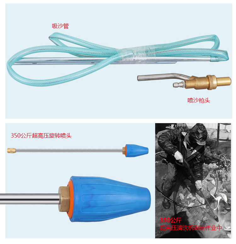10 м шланг высокого давления, 3 м всасывающий шланг, флитер, пистолет и 5 шт насадок (0 °,25 °)