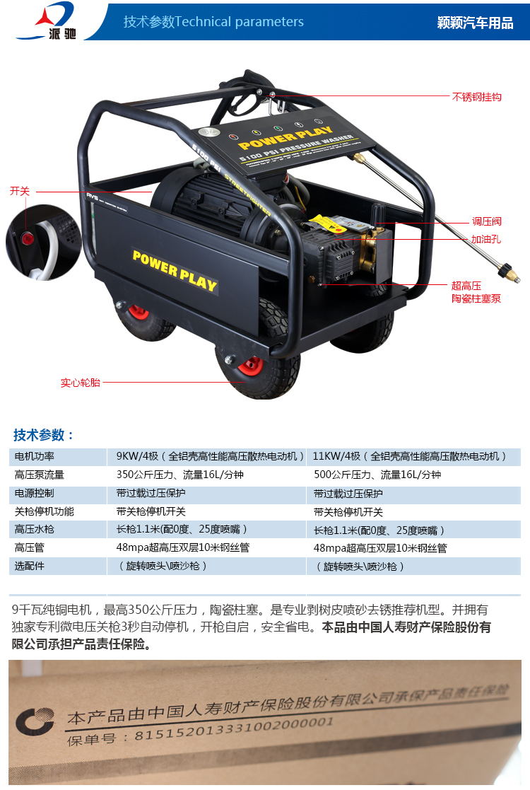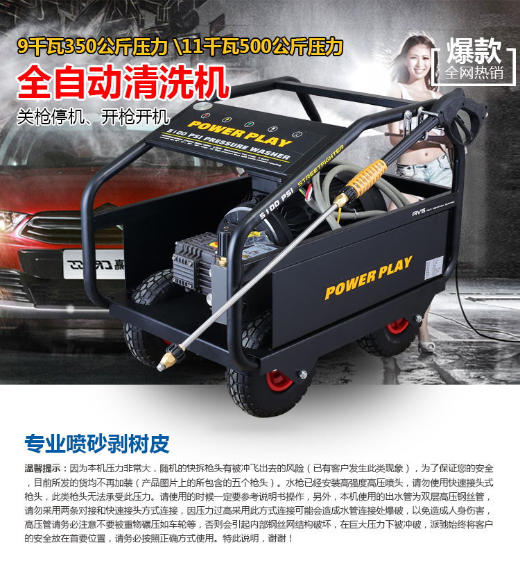 5100PSI 350BAR15.4л/мин, 4GPM (США)14003WZ-18149KW8 мм x 10 м126 Особенности: 1. 8 мм x 10 м стальная оплетка шланг высокого давления 2. Профессиональный пусковой пистолет с защитным замком