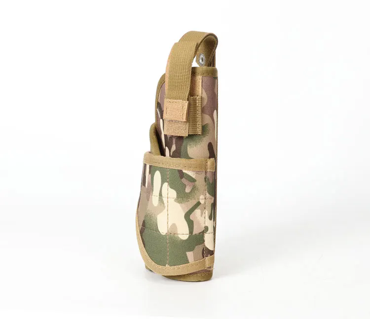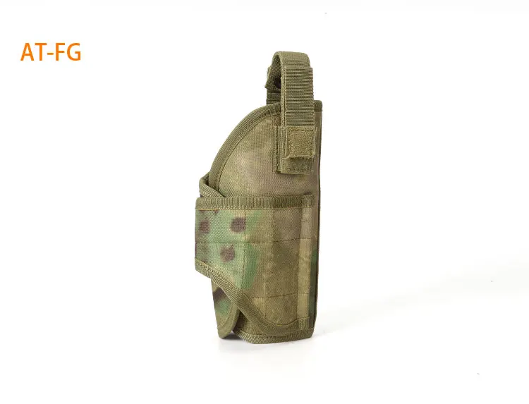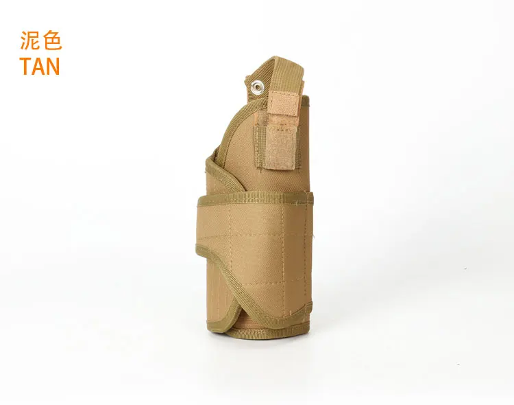 1) Tactical belt holster for handgun, pistol and revolver. 2) Velcro strap and buckle snap made this holster fully adjustable. 3) Universal holster fit various pistol frame size. 4) Accommodate with one pistol. 5) Able to attach to any molle webbing vest, bag or backpack...etc. 6) Can also attach to waist belt or vest belt.7) Perfect for outdoor war game activities. Details:Material - Made by high density nylon.Type - Right handed design.Weight - 188gSize - 225mm (H) x 100mm (W) Note: Please check your pistol size to fit this holster.