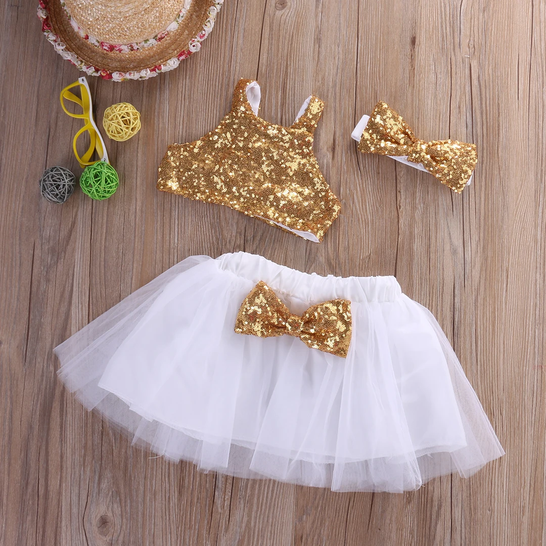 Топы с блестками для маленьких девочек + юбка-пачка; нарядное платье; платье принцессы для новорожденных; летняя детская одежда без рукавов на свадьбу и Рождество