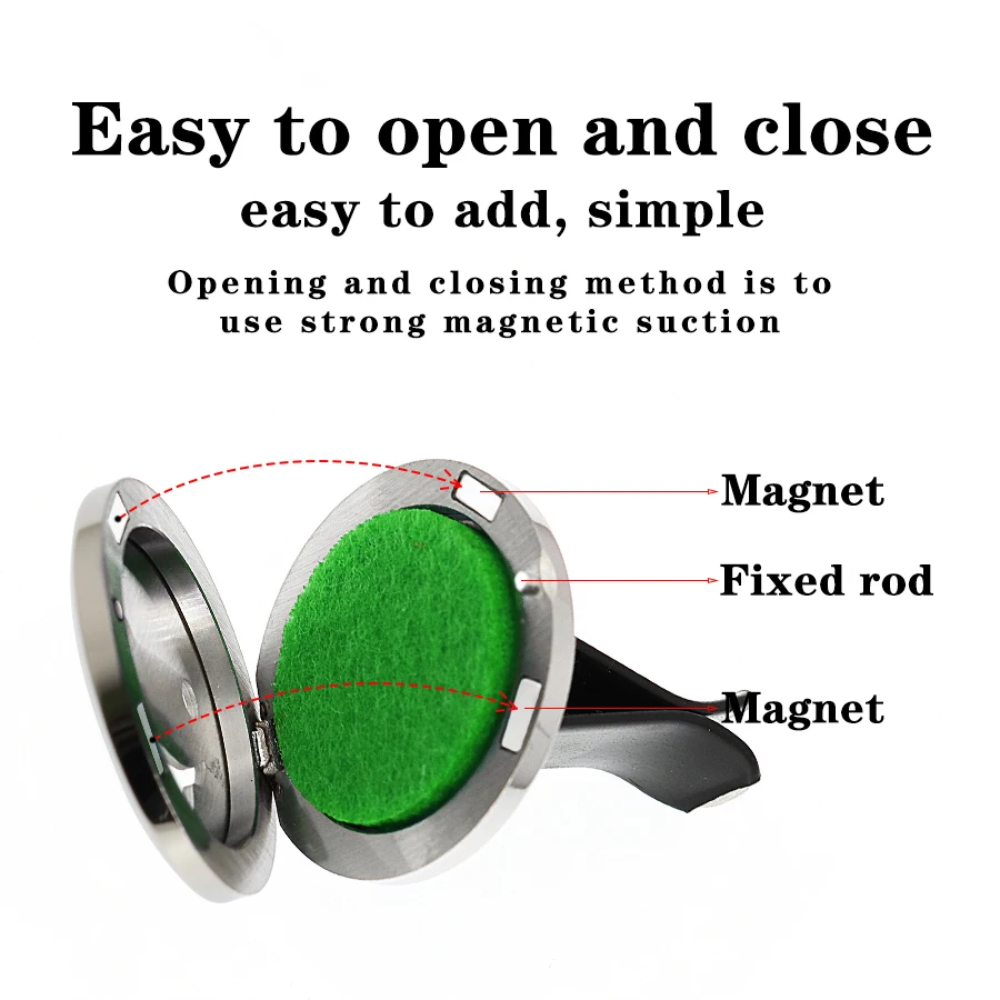 1. Этот медальон из нержавеющей стали является отличным способом положить ваше эфирное масло или парфюм в течение дня в вашем автомобиле.