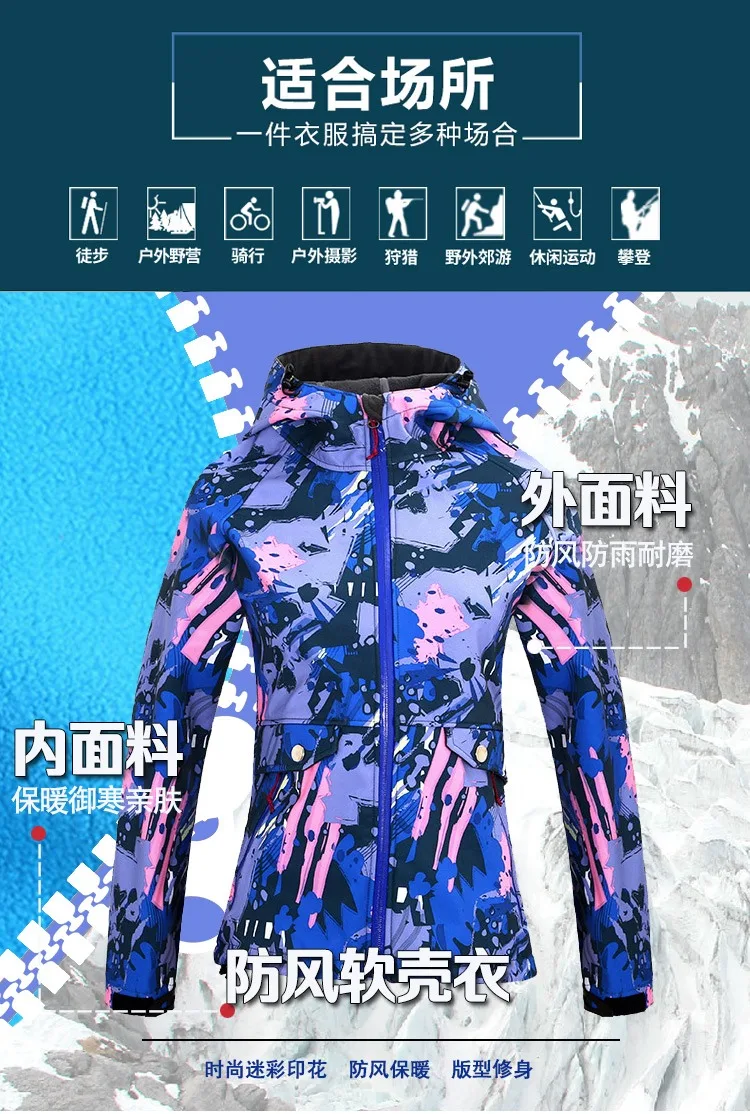 Женская зимняя водонепроницаемая Флисовая теплая куртка из флиса, верхняя одежда для охоты, Походов, Кемпинга, с капюшоном, теплое ветрозащитное пальто