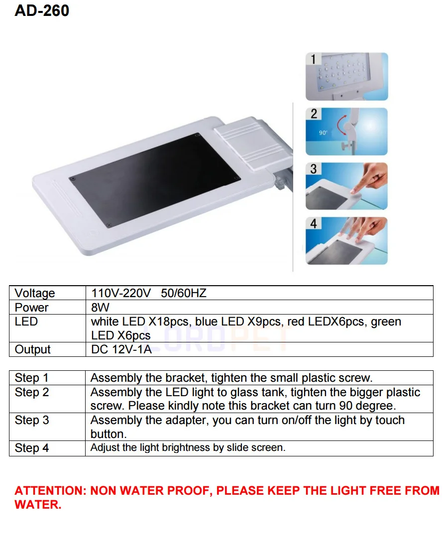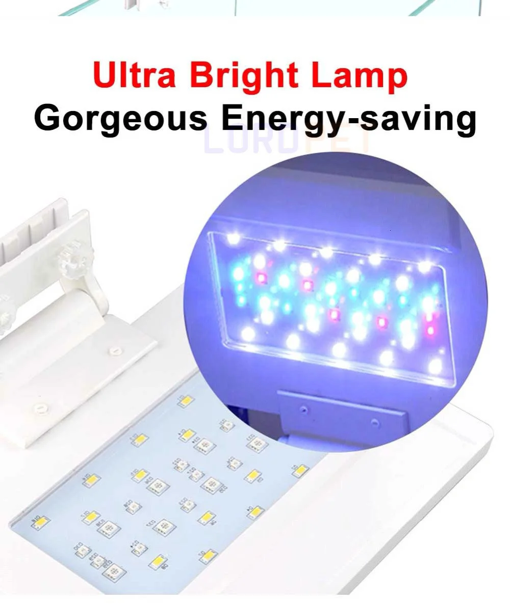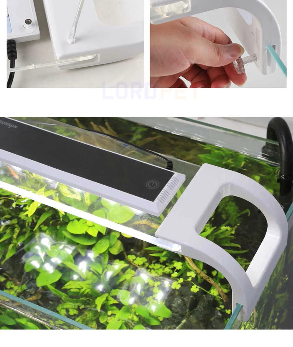 Высокопроизводительный светодиодный светильник обеспечивает равномерный, синий ночной и сумеречный светильник, соответственно, в вашем аквариуме, что особенно способствует естественному воздействию креветок и небольших крабов и за его пределами, что позволяет делать интересные наблюдения. Современная сенсорная кнопка на верхней части аквариума светильник ing, вы можете переключаться между Дневной светильник и лунный светильник.